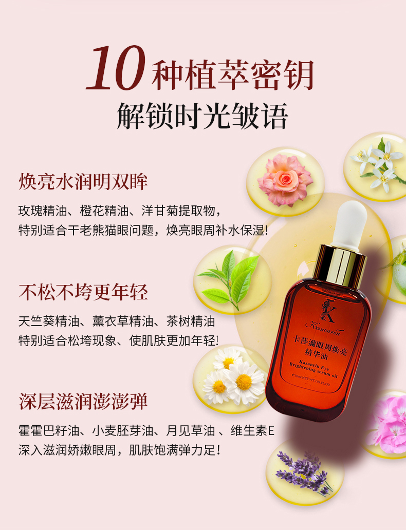 卡莎灡眼周焕亮精华油,改善眼周肌肤 补水嫩肤