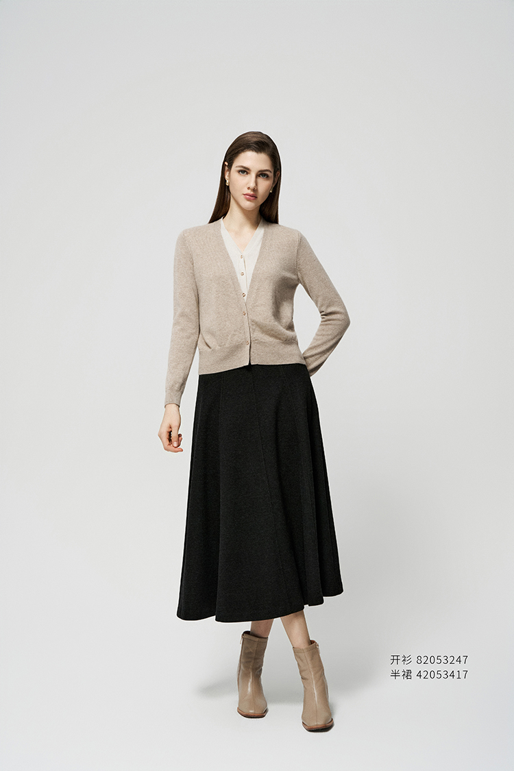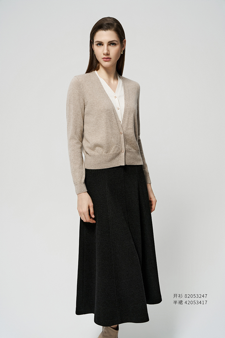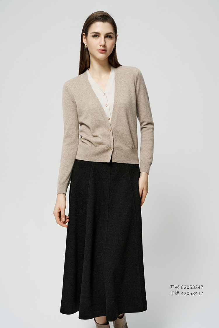 【V领两粒扣羊绒开衫】羊绒世家秋冬新品女士100%山羊绒针织开衫短款外套