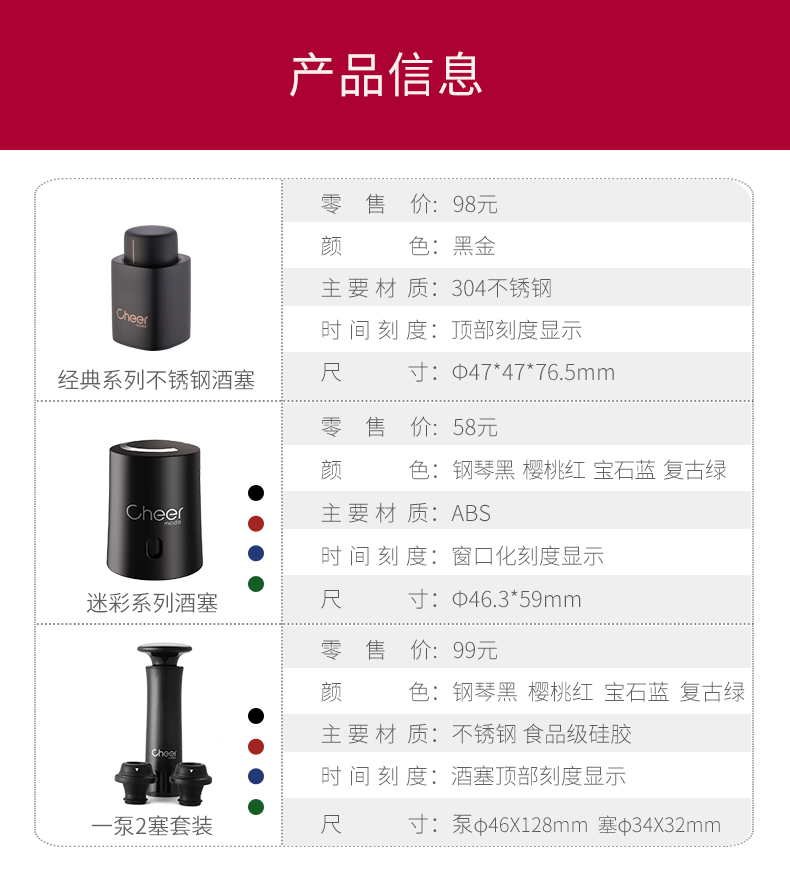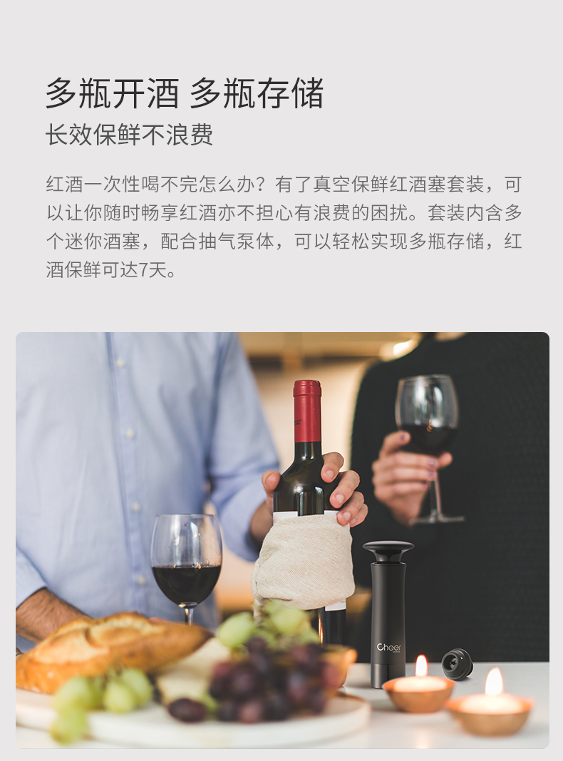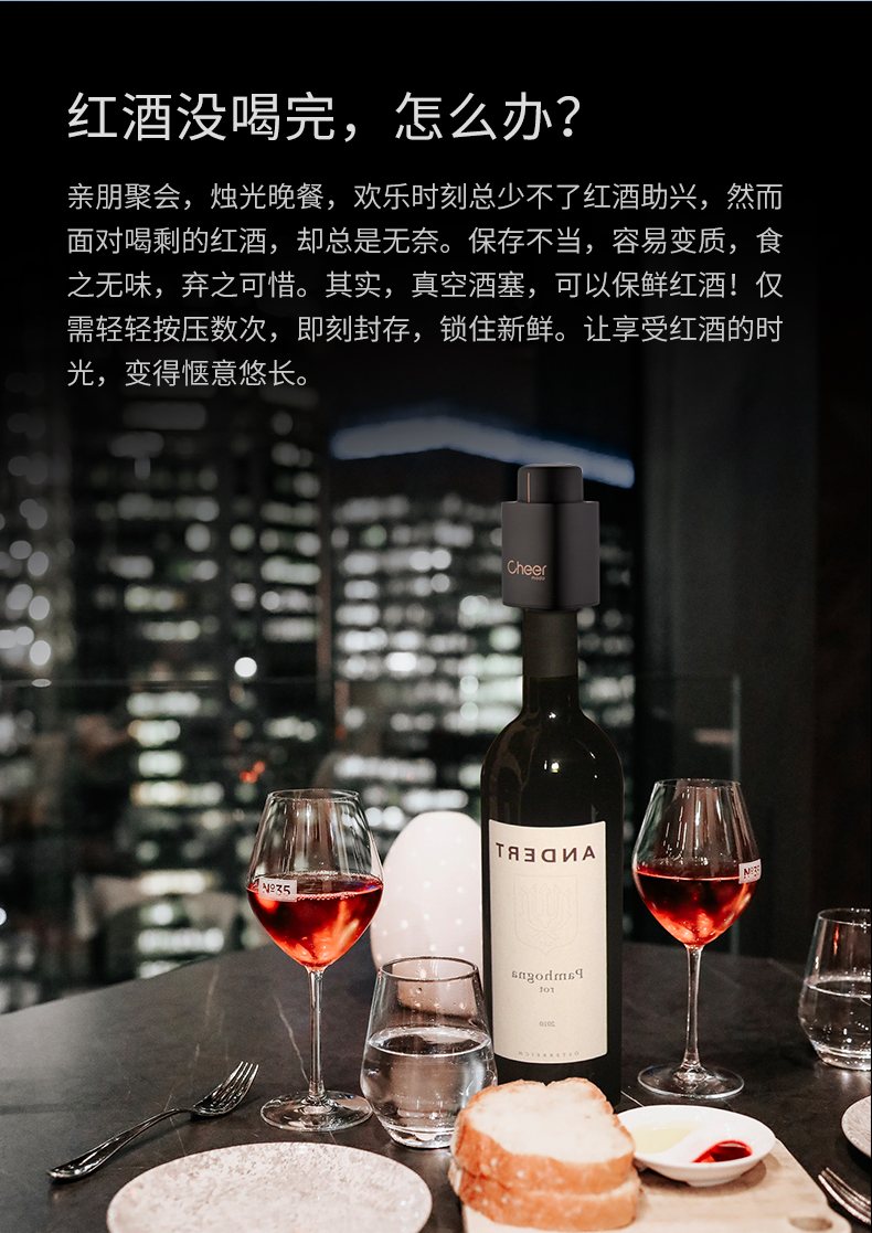 cheer启尔红酒塞 抽真空瓶塞家用密封葡萄酒红酒塞子瓶盖红酒瓶塞