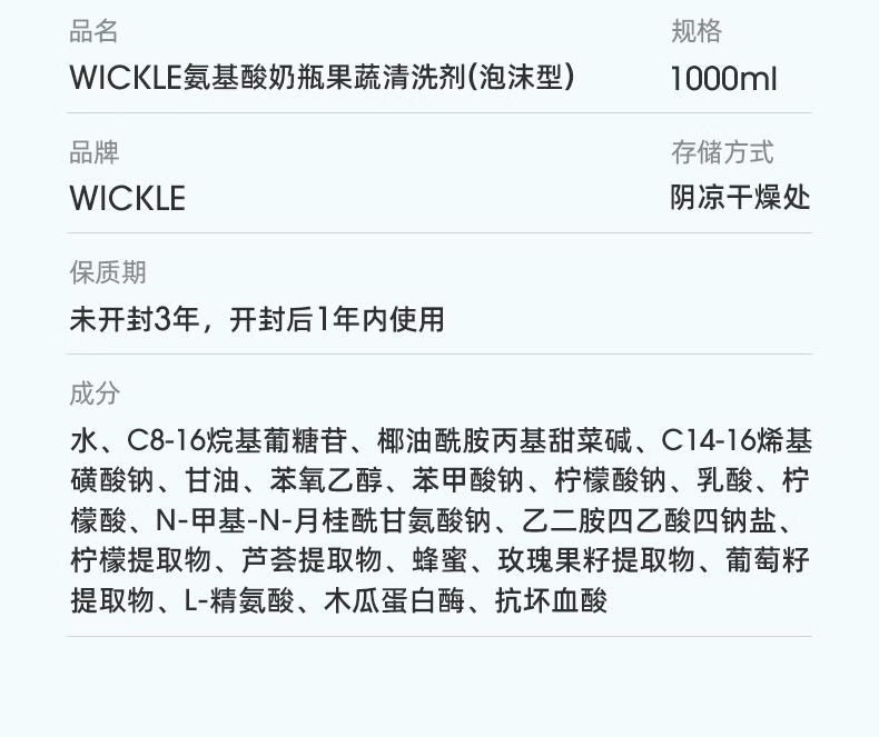 WICKLE奶瓶清洁剂婴儿专用果蔬清洗液宝宝水果玩具餐具清洗补充/WH-WC1001--WC1002