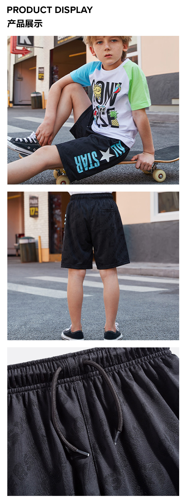 Converse匡威商场同款童衣童装夏新男儿童清凉速干印花五分短裤CV