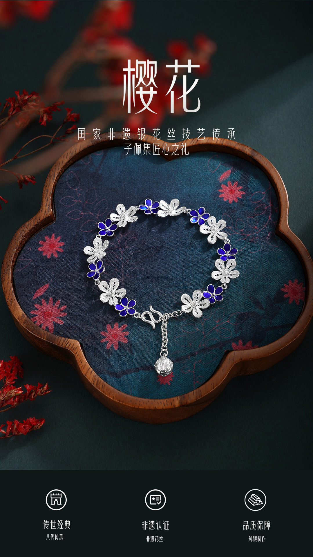 子佩集S990银【樱花】手链【WBLSHSL-4】花丝珐琅彩2510