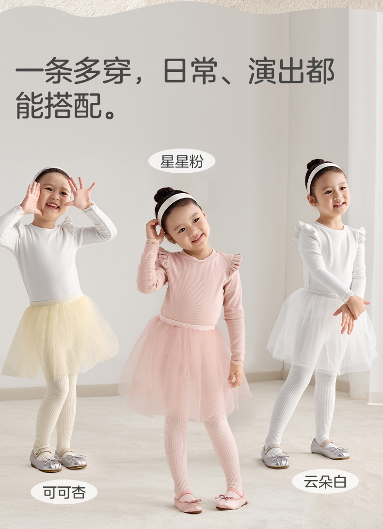 粒粒阳光女童连裤袜春秋儿童舞蹈袜芭蕾风裤袜女孩打底袜