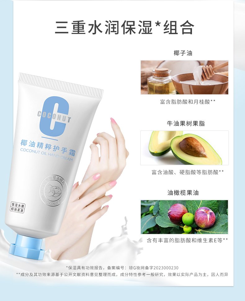 【拍2件第二件0元】尧香堂椰油精萃护手霜保湿椰香润手霜补水滋润手部肌肤不油腻50g