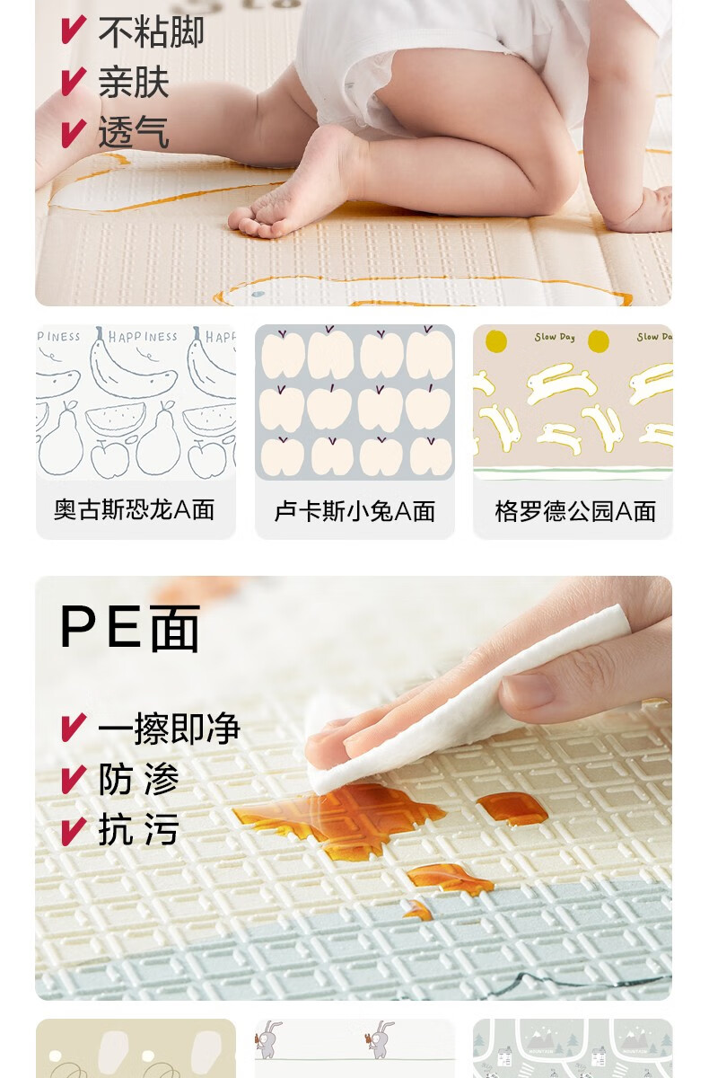 【babycare好物集】婴儿爬行垫宝宝爬爬垫家用防滑可XPE折叠防水耐脏无味地垫抗菌