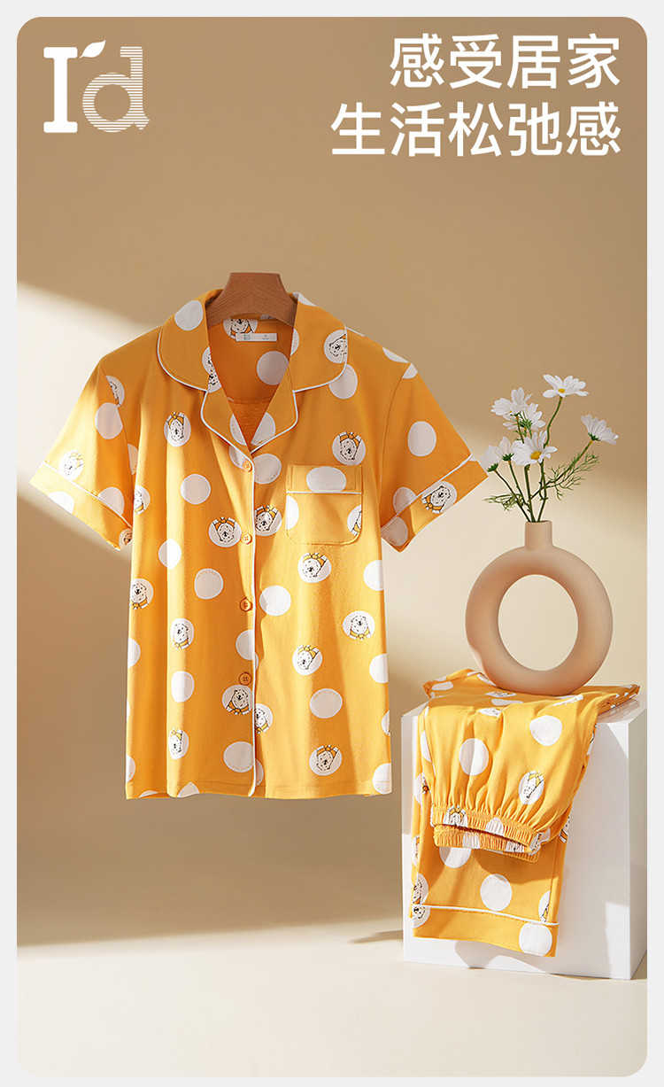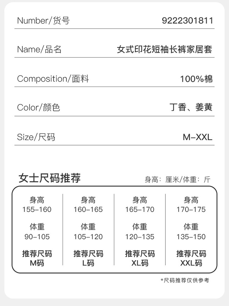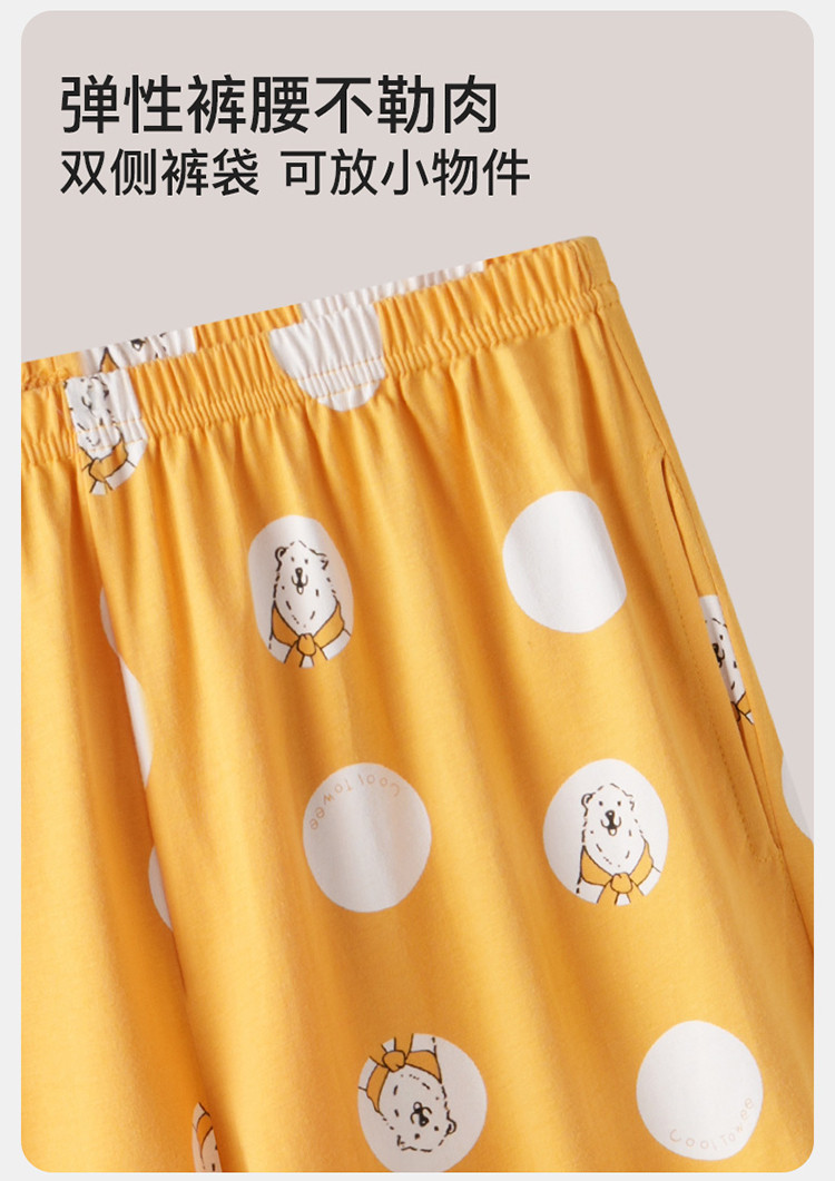 【专柜同款 】女士纯棉印花短袖长裤家居服套装睡衣女