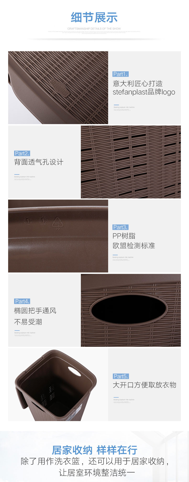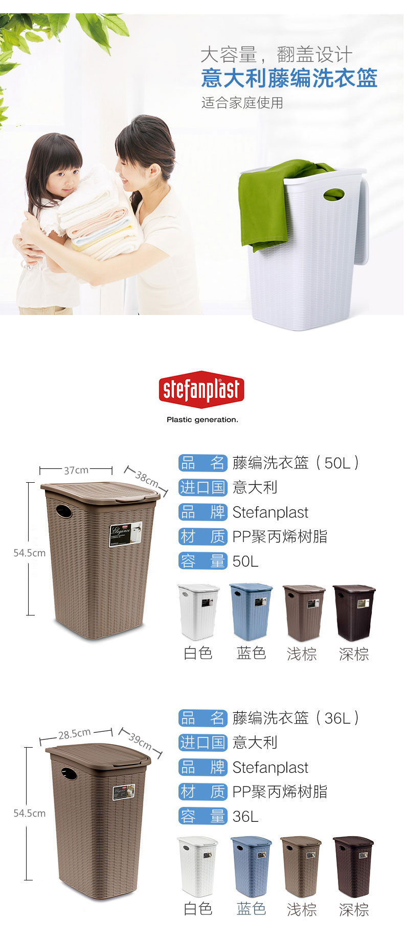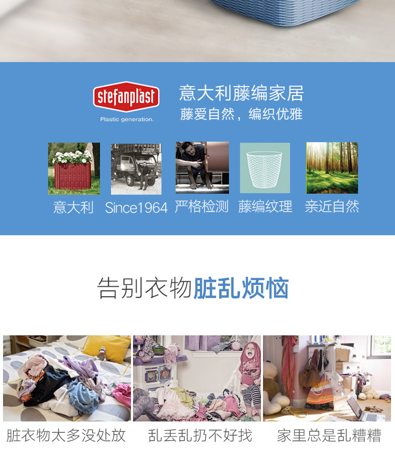 利快StefanPlast意大利进口编织风格仿藤编脏衣篮/洗衣篮/收纳筐