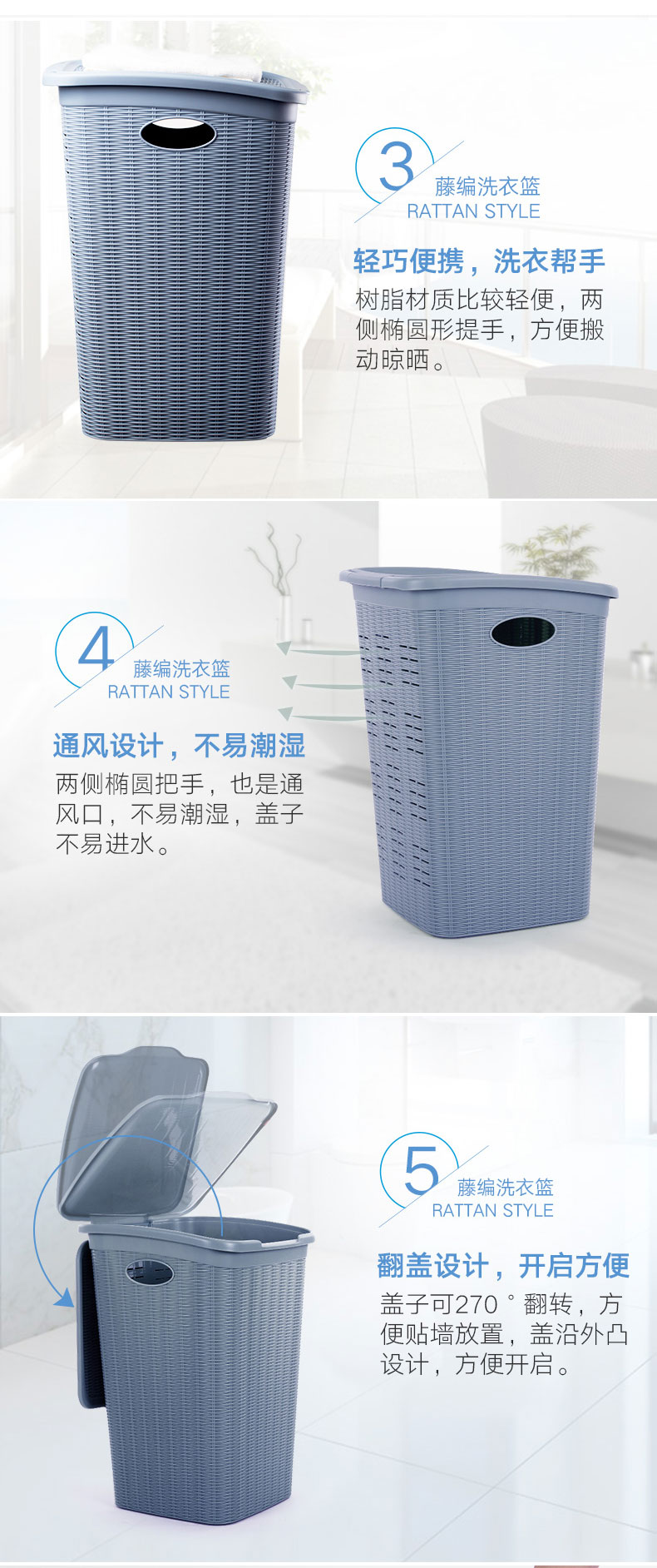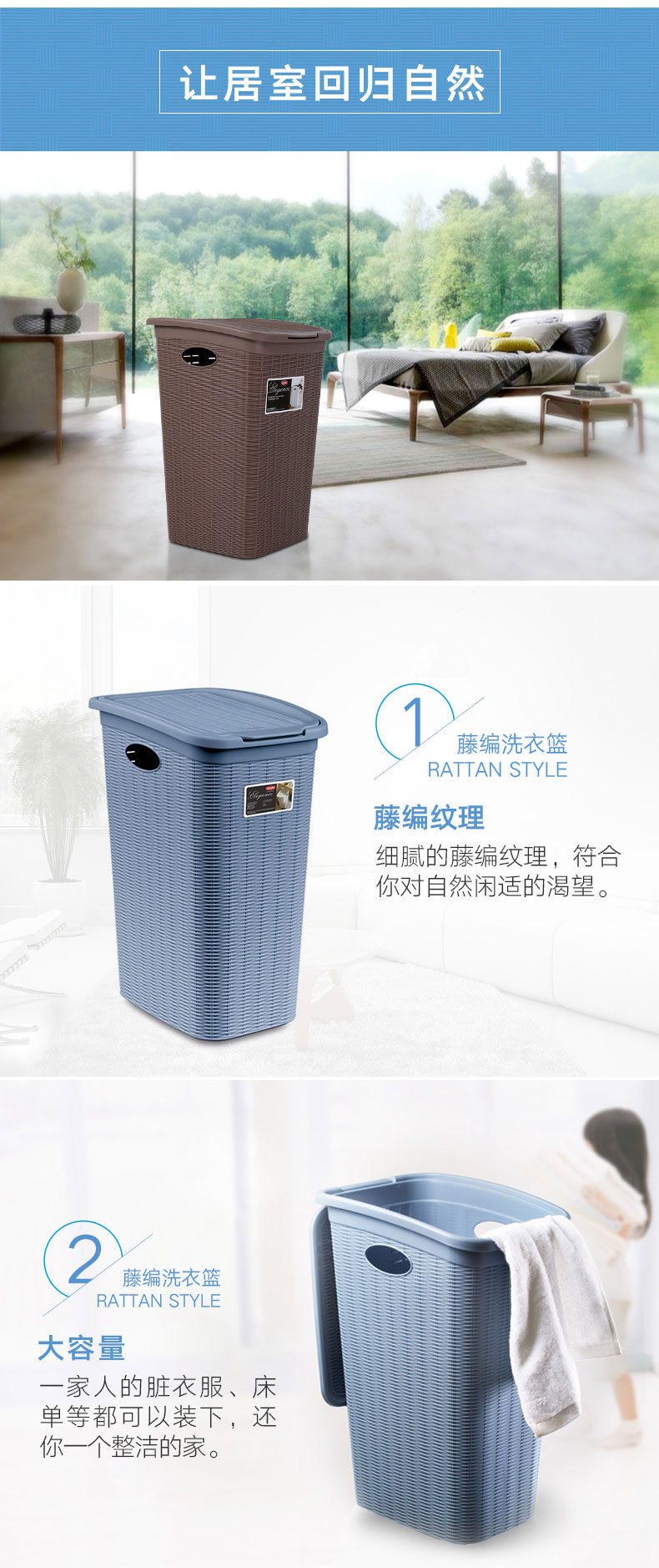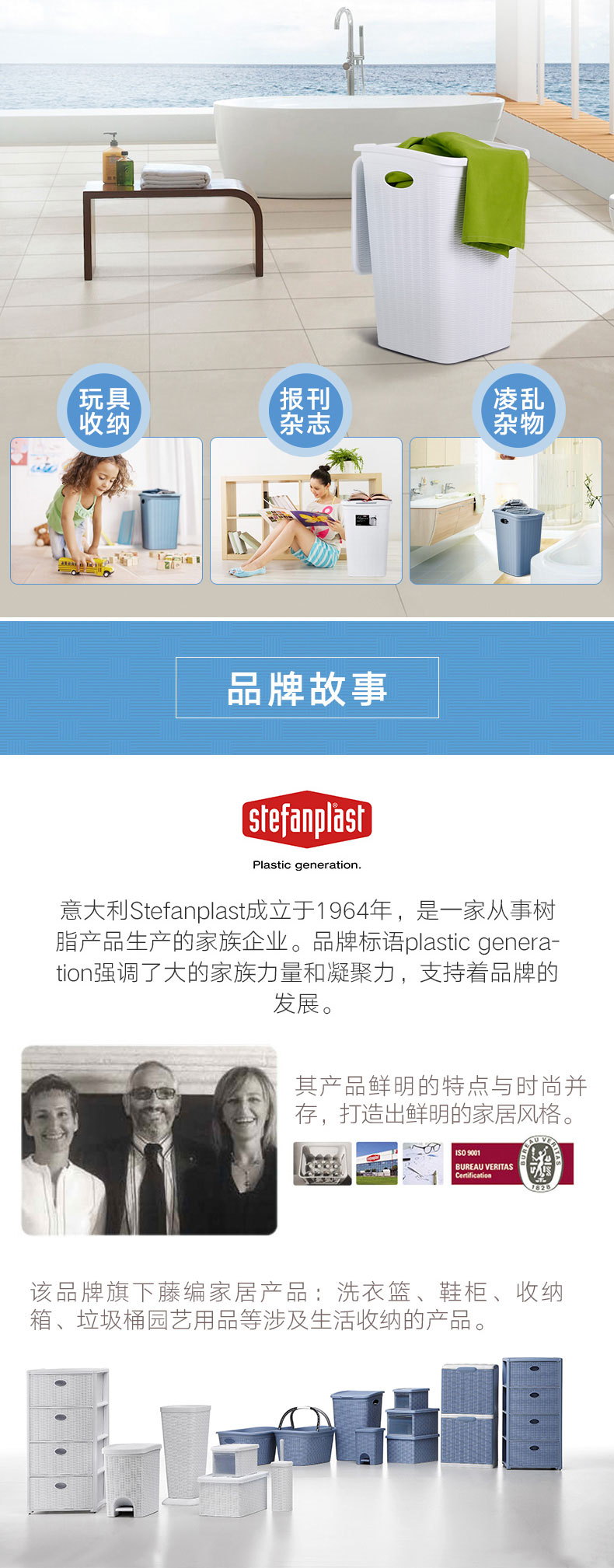 利快StefanPlast意大利进口编织风格仿藤编脏衣篮/洗衣篮/收纳筐
