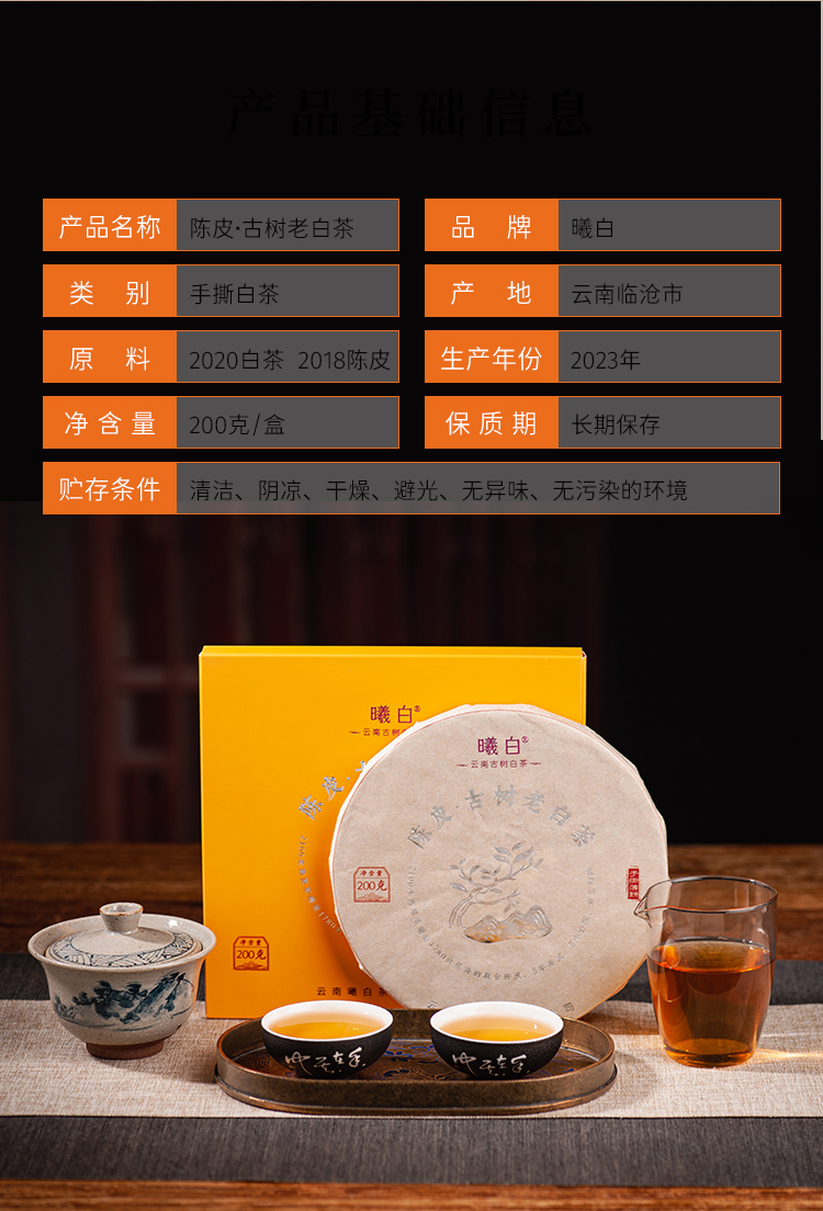 云白丨曦白 5年陈皮 +3年古树老白茶 200克/盒