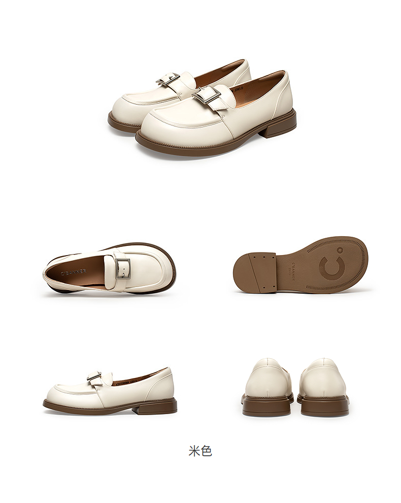 MIO米奥秋季金属扣饰休闲乐福鞋圆头舒适复古厚底单鞋女鞋M244542409