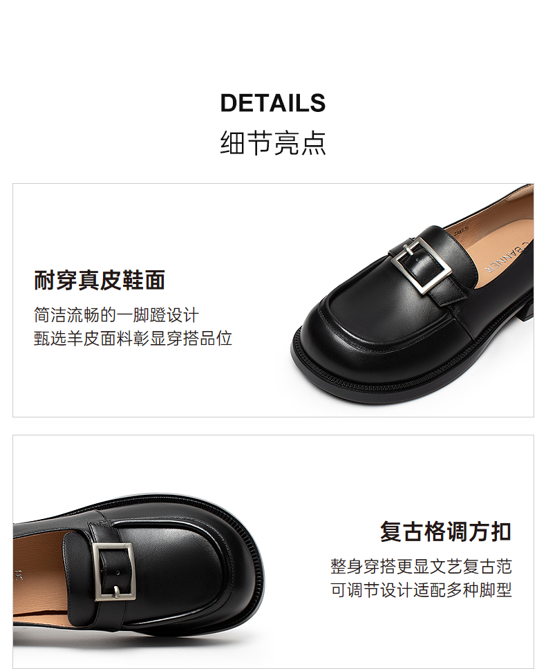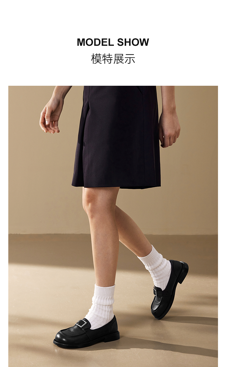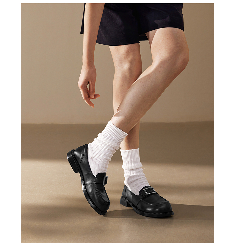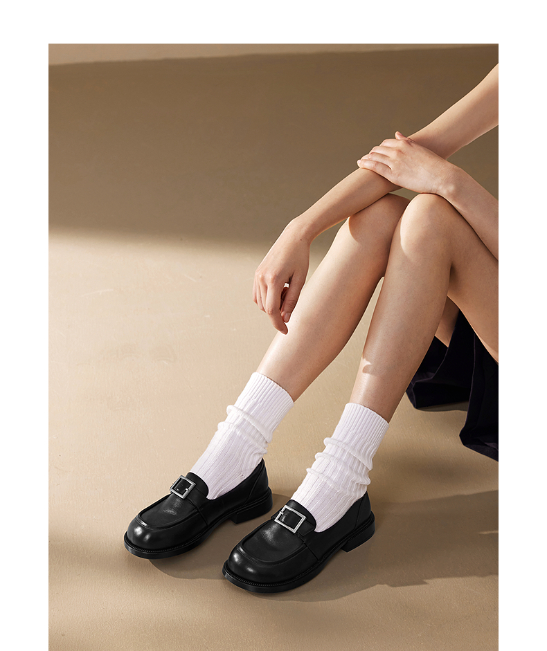 千百度复古羊皮厚底乐福鞋女款JK通勤一脚蹬小皮鞋A25173585