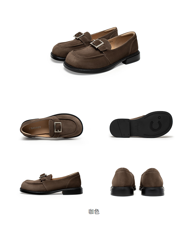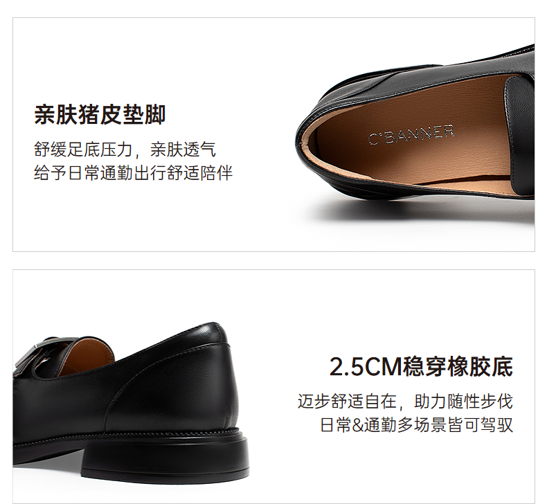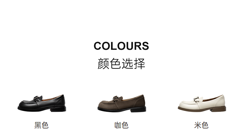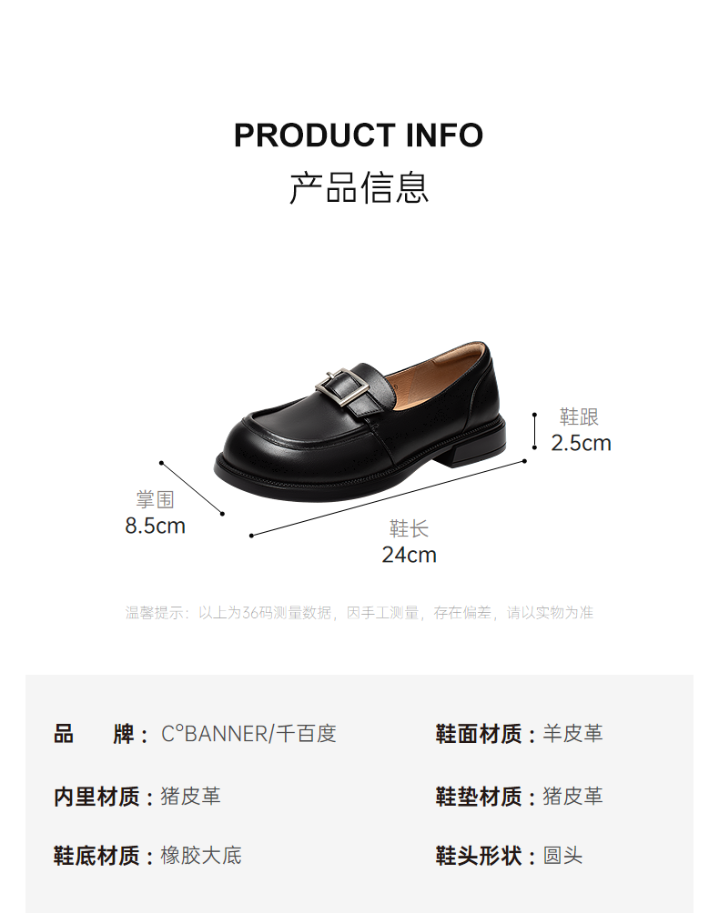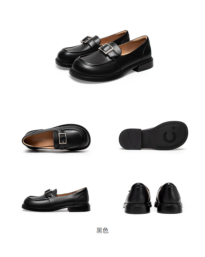 千百度复古羊皮厚底乐福鞋女款JK通勤一脚蹬小皮鞋A25173585