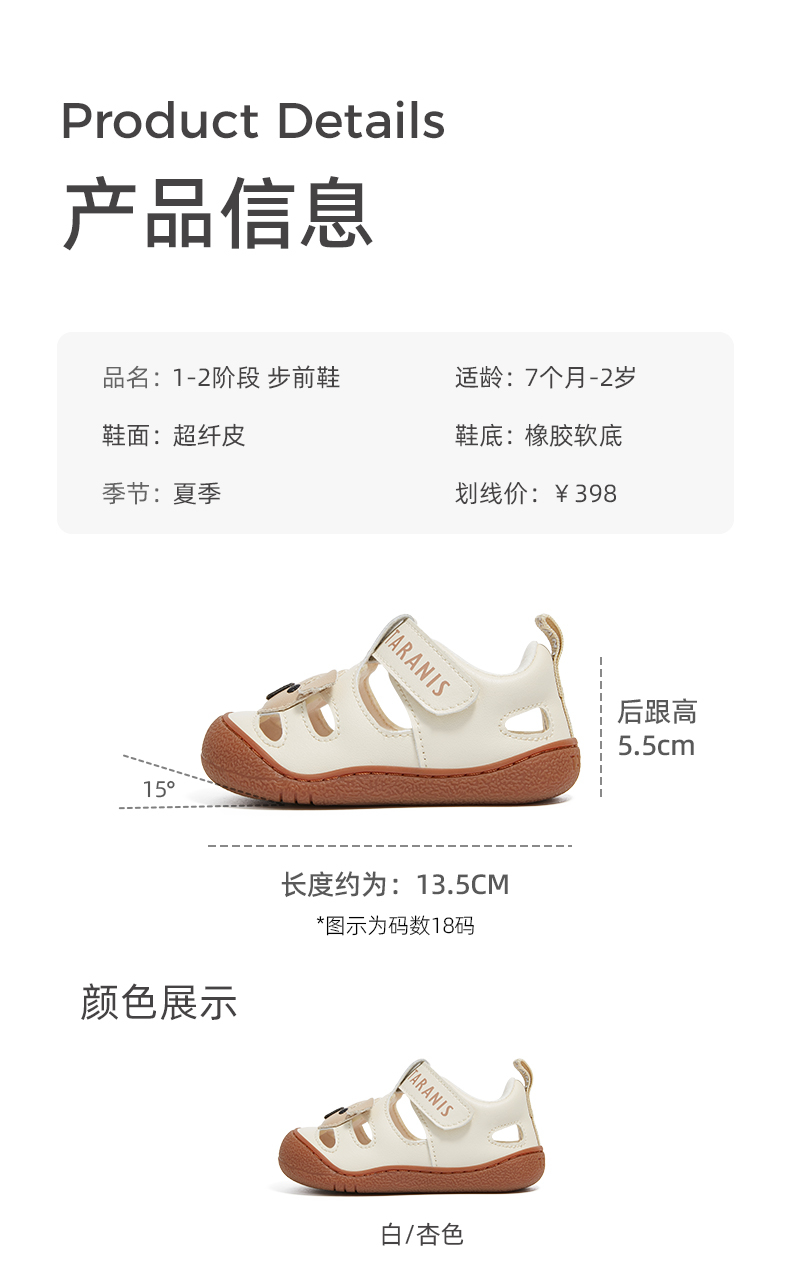 泰兰尼斯稳稳鞋MAX夏季新款童鞋学步鞋女童凉鞋真牛皮机能鞋男童 T26T5B7114