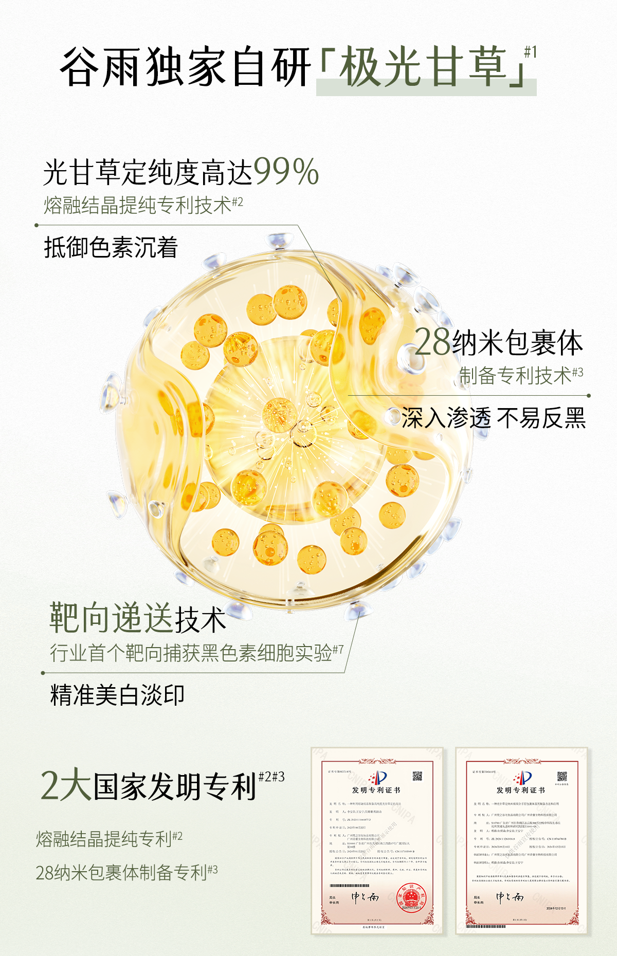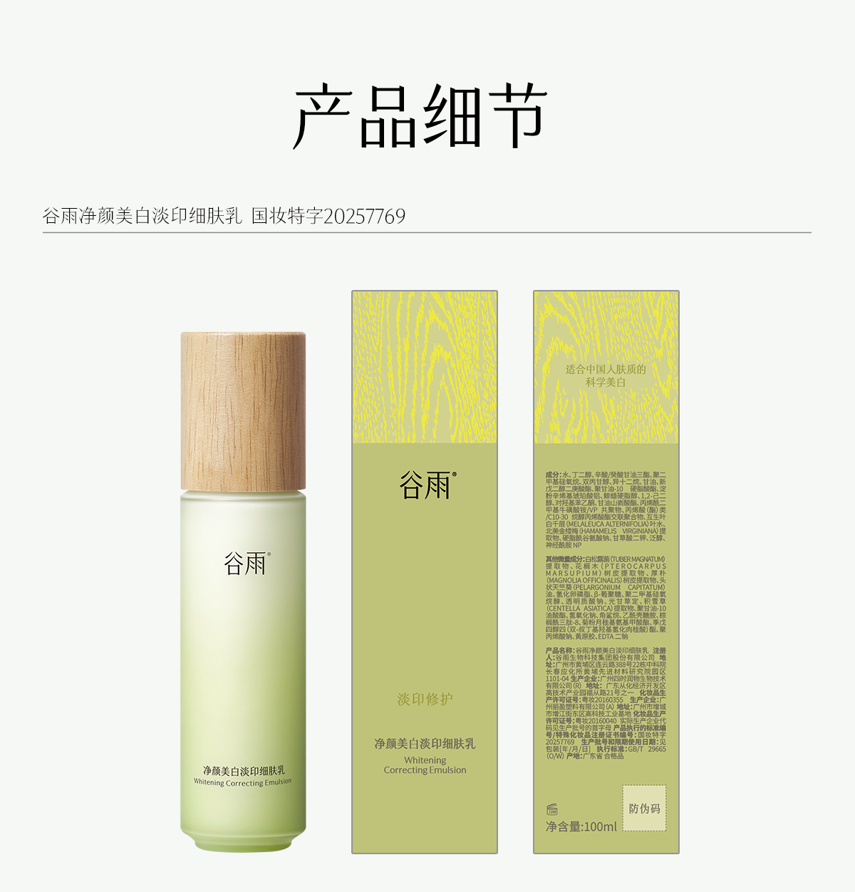 - 谷雨,更适合中国人肤质的植萃美白。专研中华珍稀美白植萃光甘草定,深入研究中国人肤质特点,打造中国女性独有的仙气白。