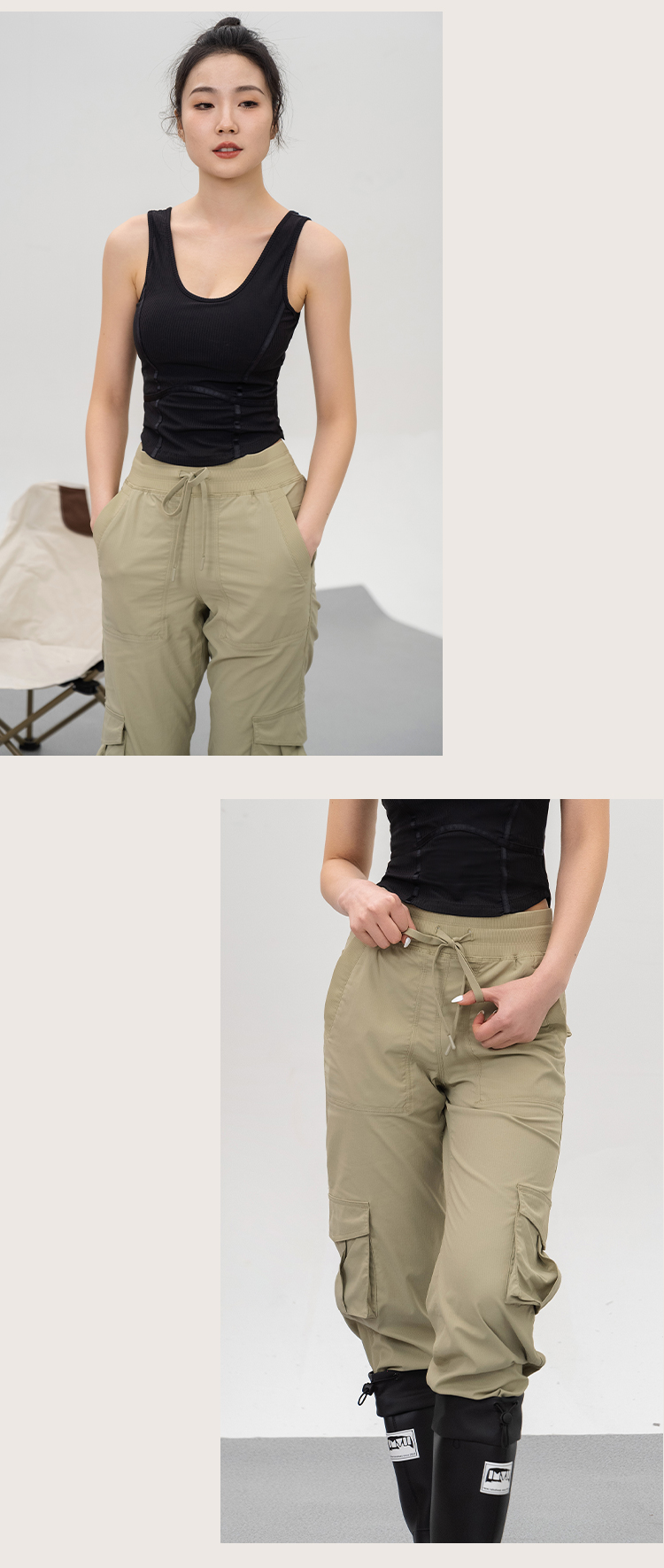 L RECNAVA 轻量防水直筒工装裤 抽绳腰头可调节 多功能口袋很能装 脚口抽绳 可直筒可束脚