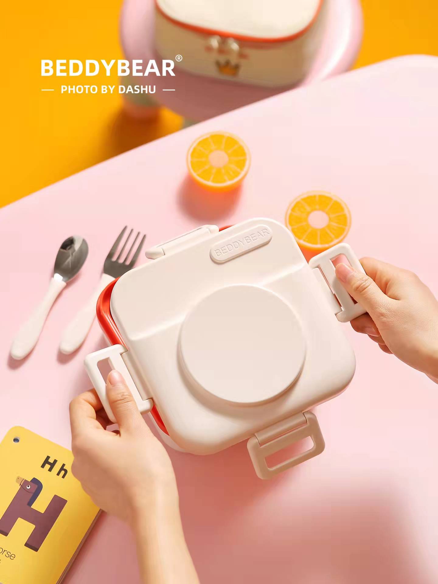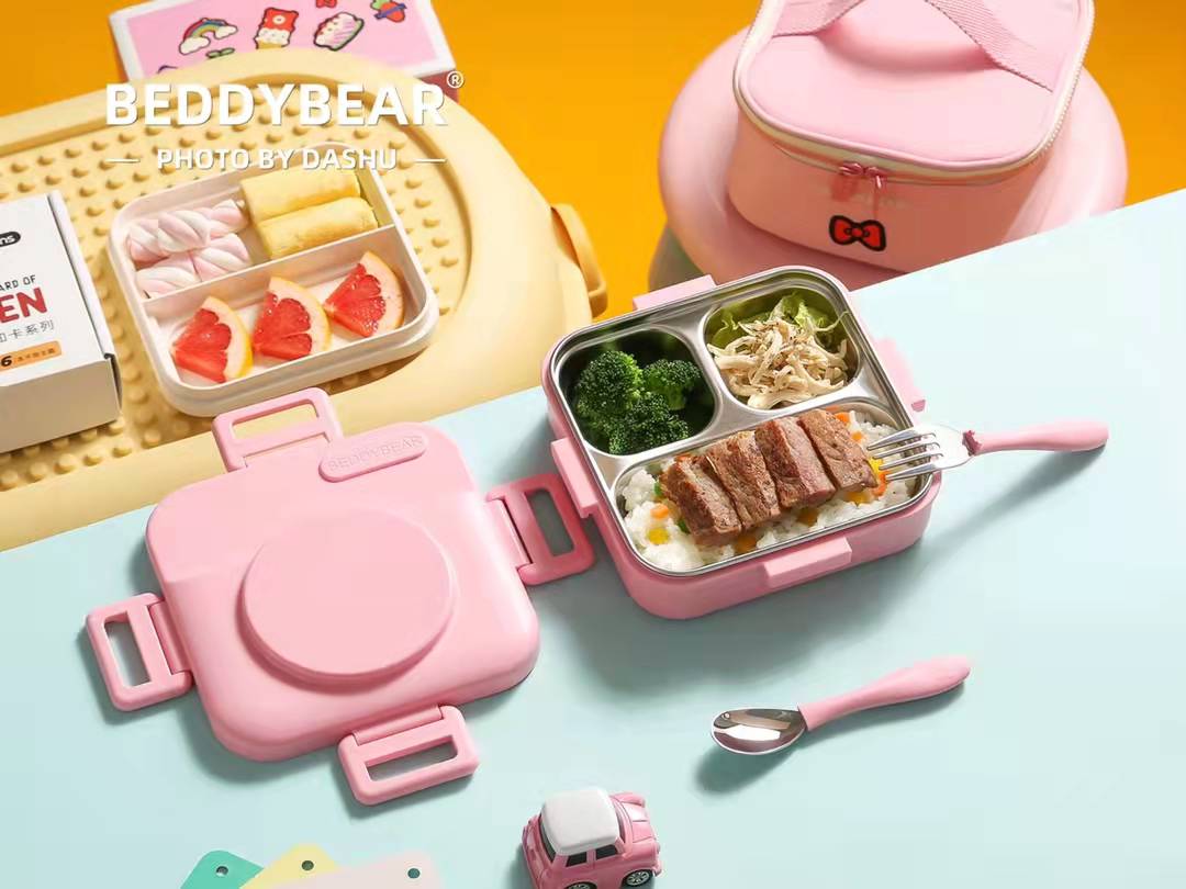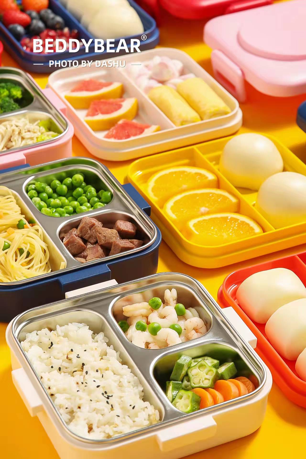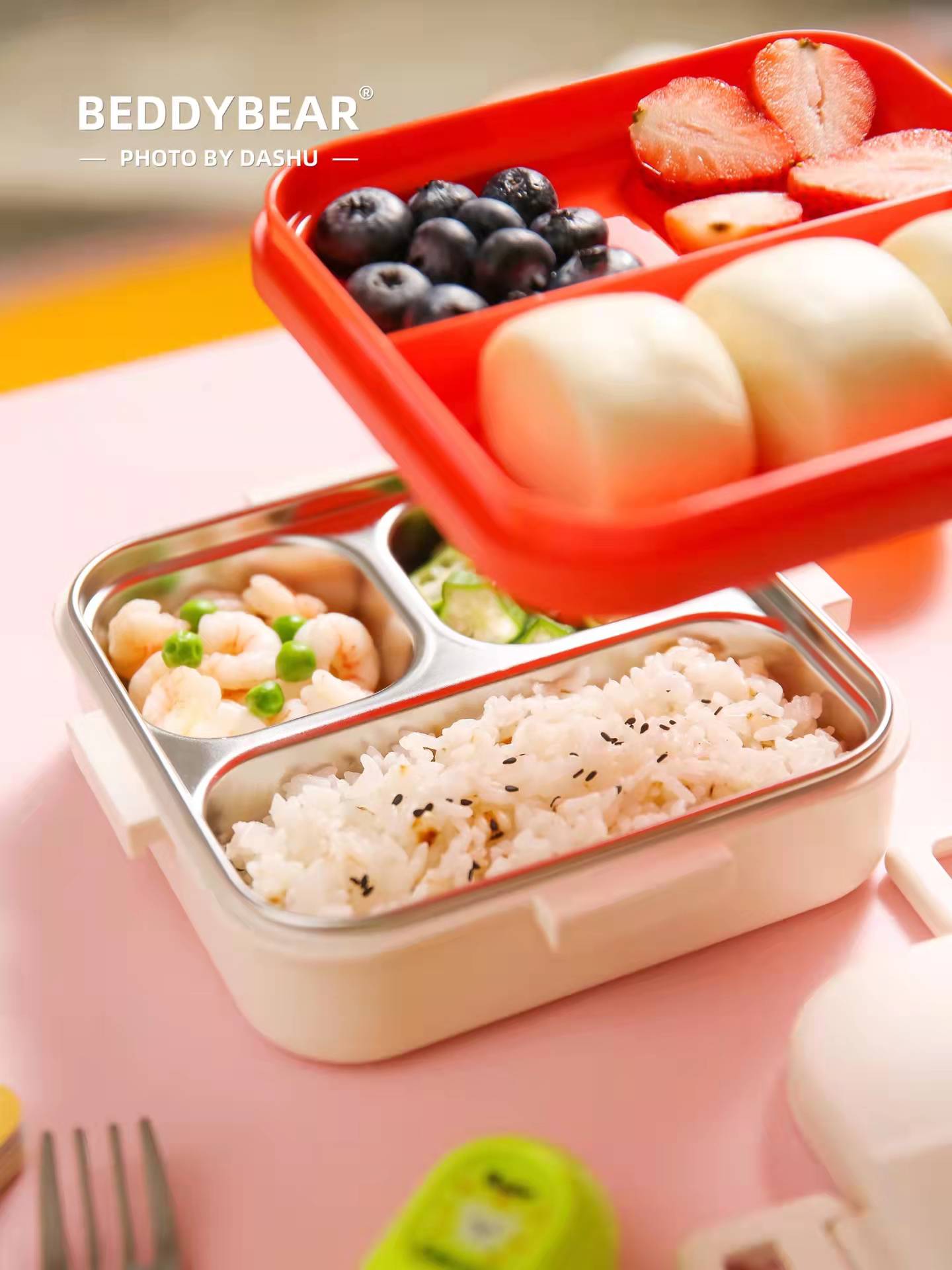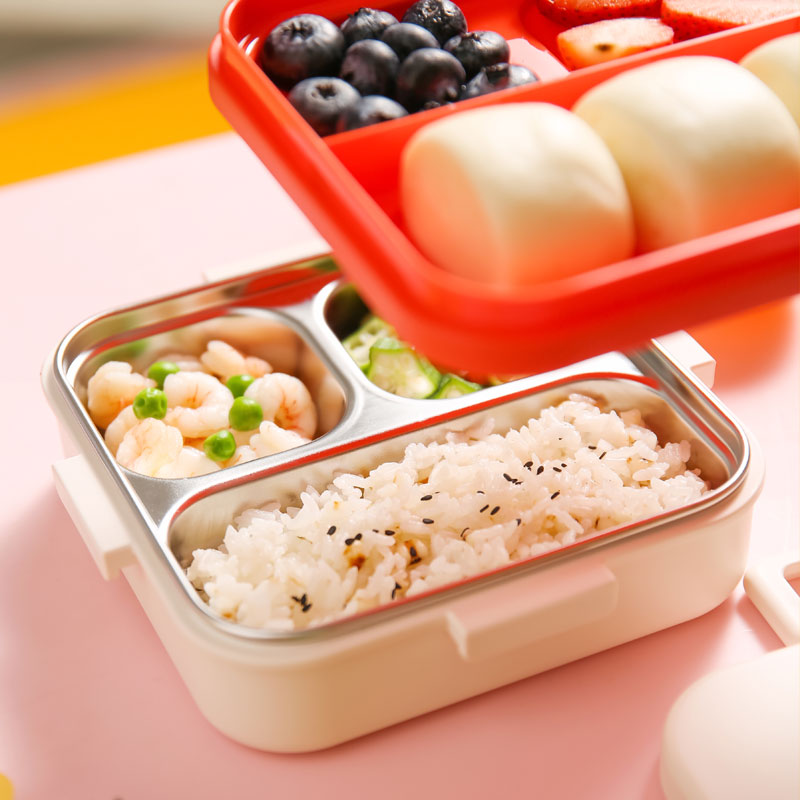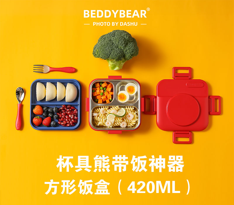 杯具熊带饭神器316不锈钢方形多彩不锈钢一体常温饭盒-10