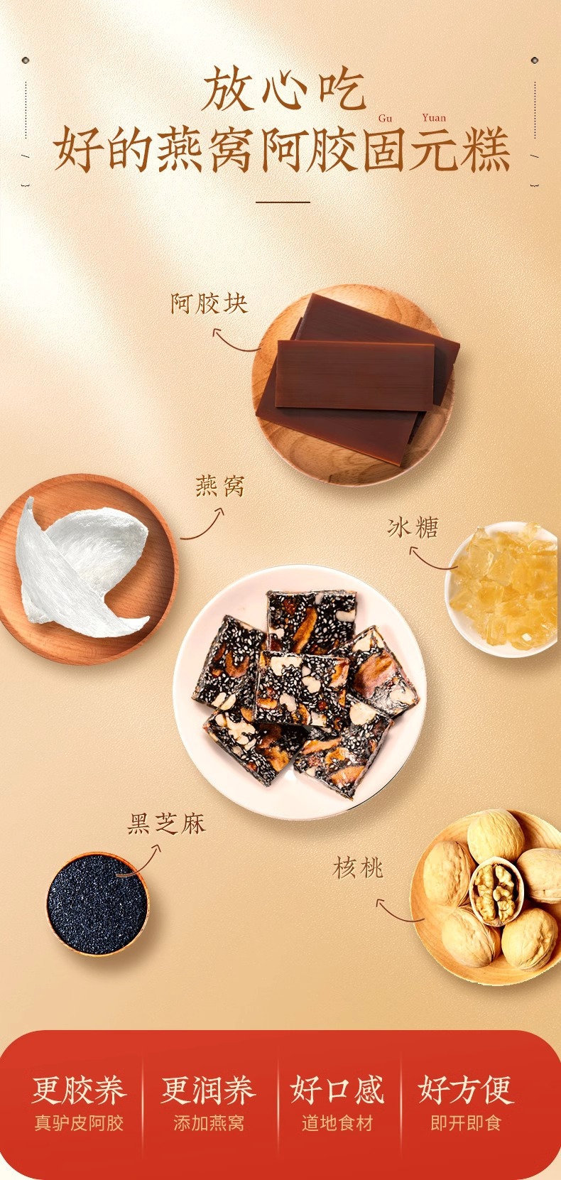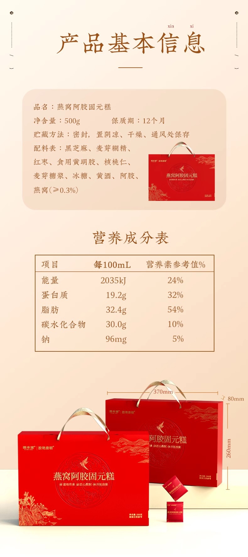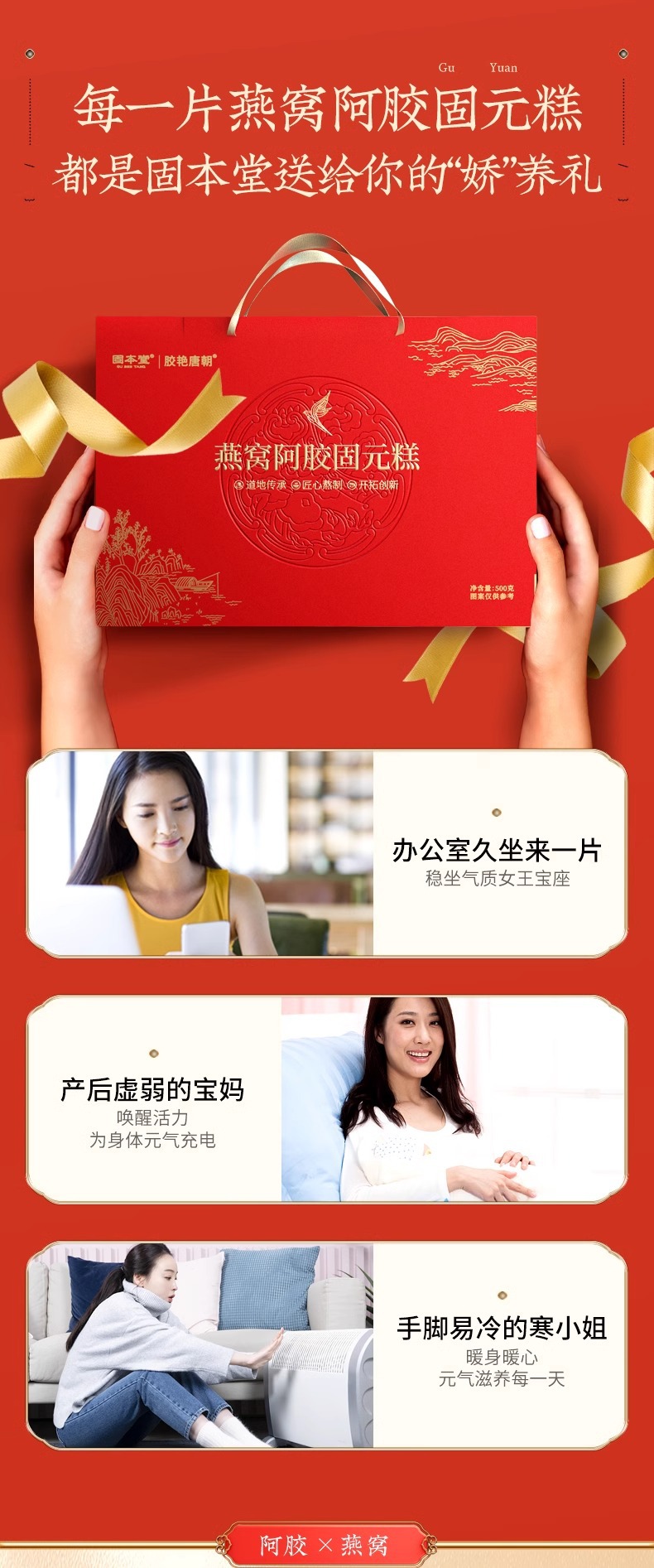 【固本堂燕窝阿胶固元糕】阿胶礼盒 阿胶补气血东阿春节送礼礼品送长辈