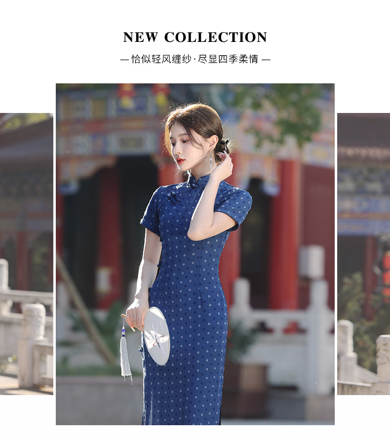 温婉复古民国风素雅旗袍,年轻款少女改良连衣裙YG-2351