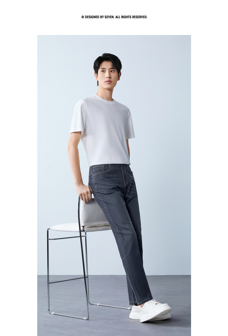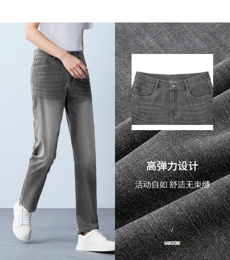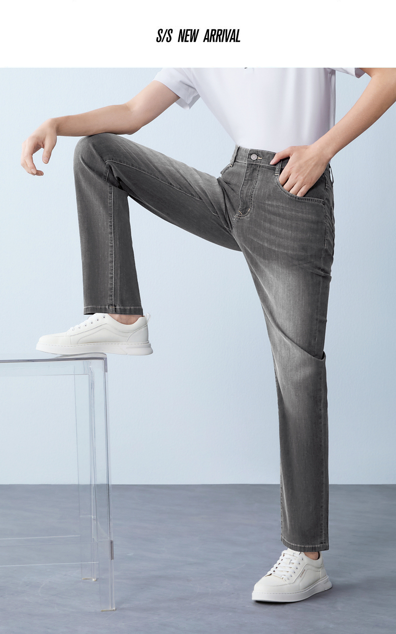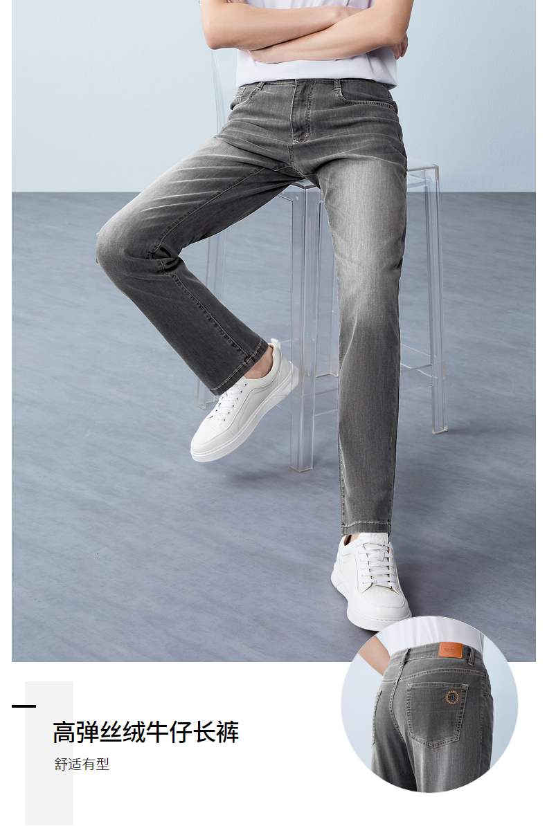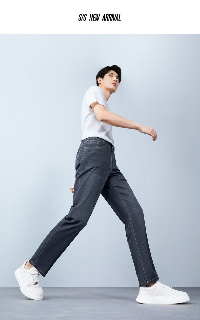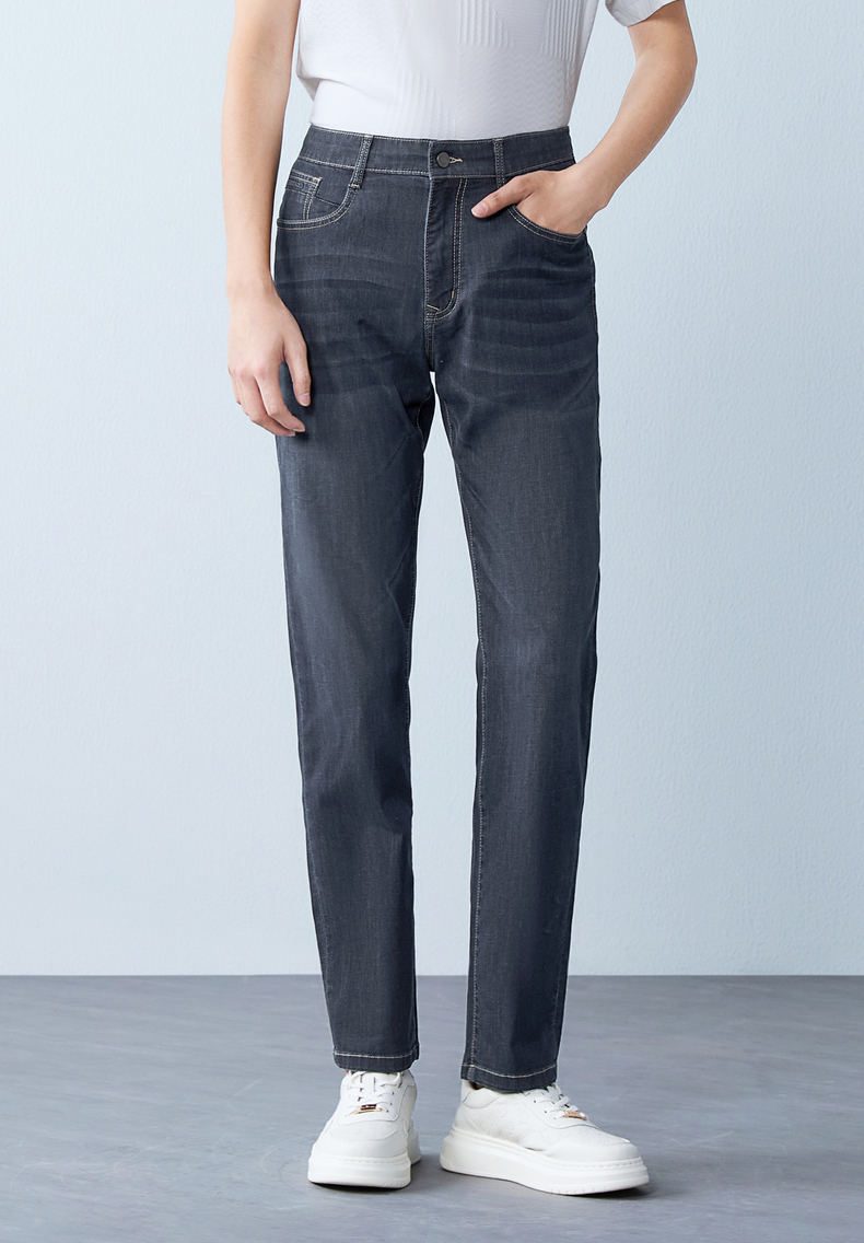 【含莱赛尔/含桑蚕丝】柒牌男式牛仔裤26春季新款易打理直筒长裤 130H70710
