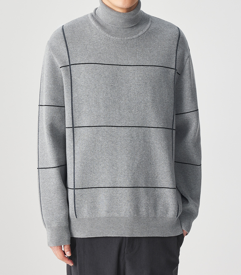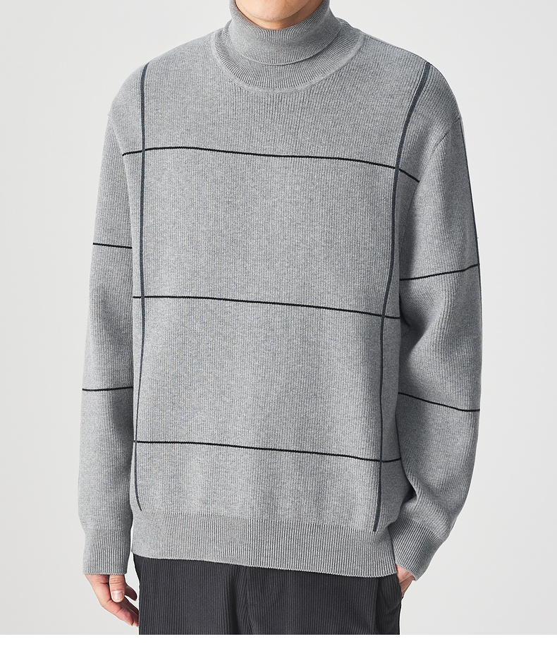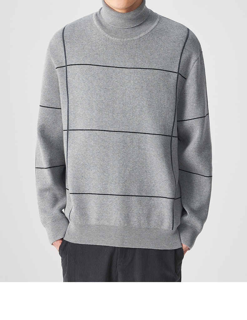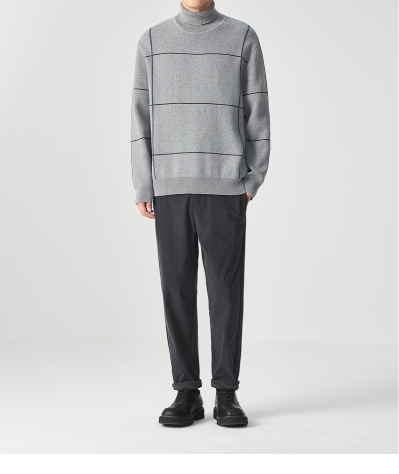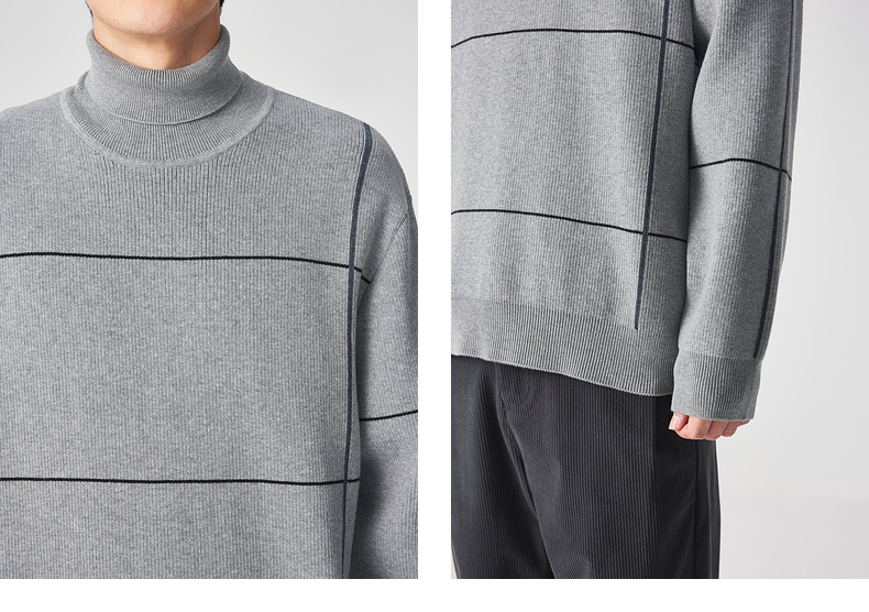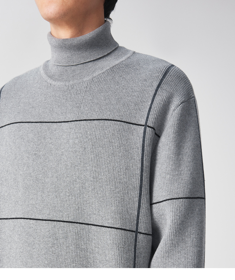 墨麦客男装 远红外升温 可翻高领针织衫冬季新款撞色保暖毛衣。