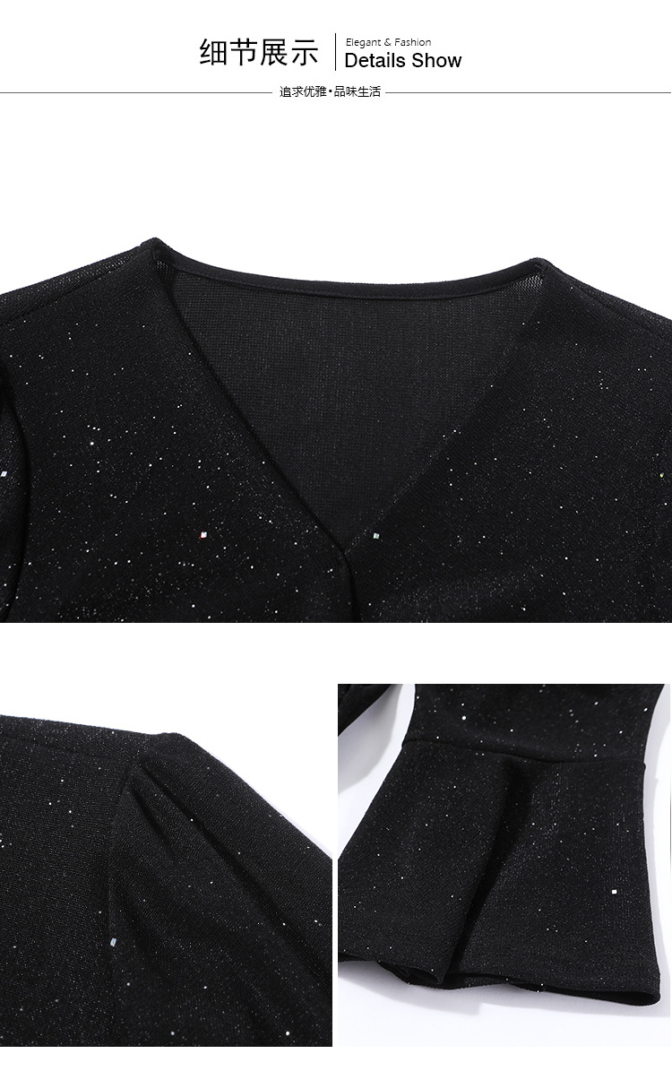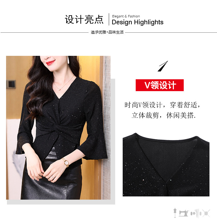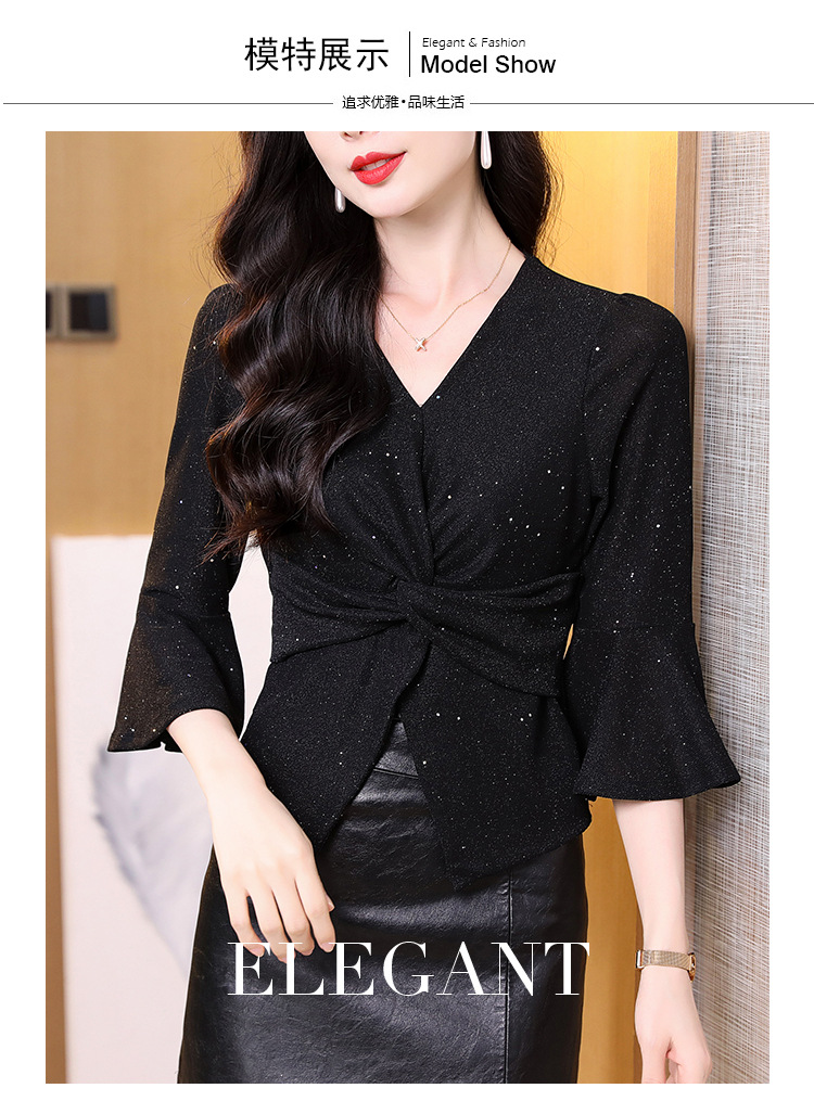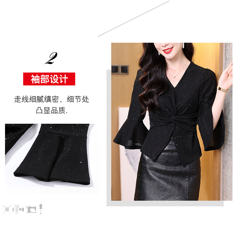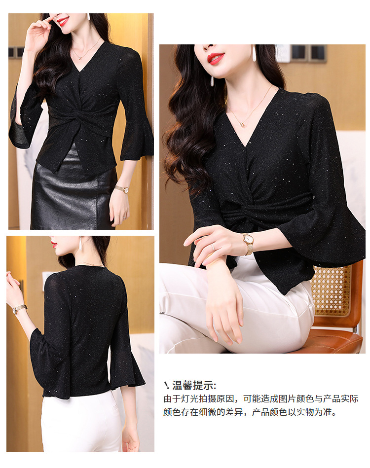 法式设计感气质喇叭袖修身显瘦打底上衣K-E65N5001