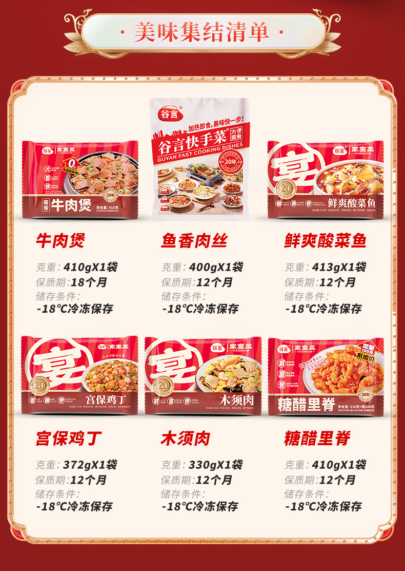 谷言家宴礼盒6道菜 预制菜团购福利-不支持7天无理由退换货