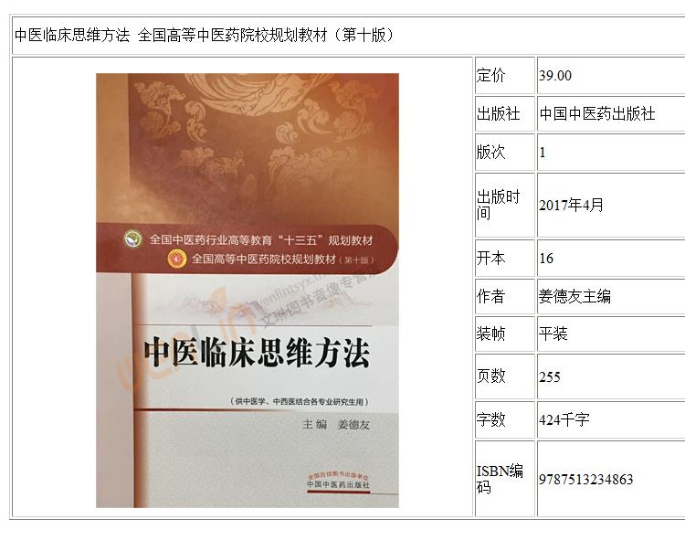 中医临床思维方法 全国中医药行业高等教育十三五规划教材 姜德友主编 中国中医药出版社9787513234863