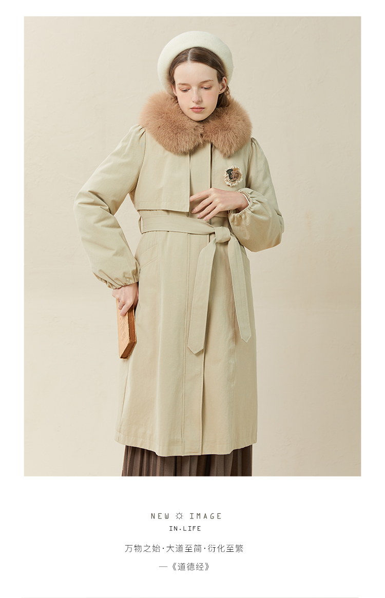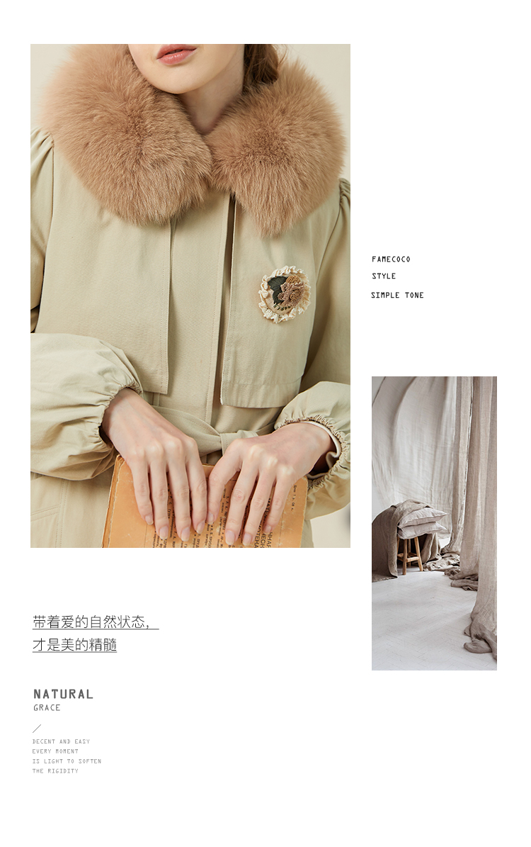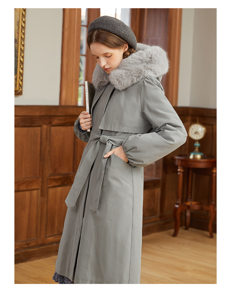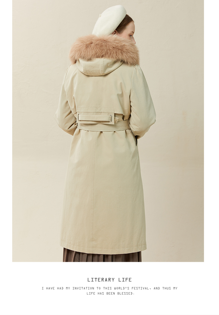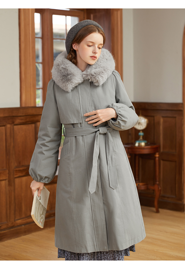 Famecoco范可儿收腰系带羽绒服女士长款过膝冬季保暖外套F228AH006