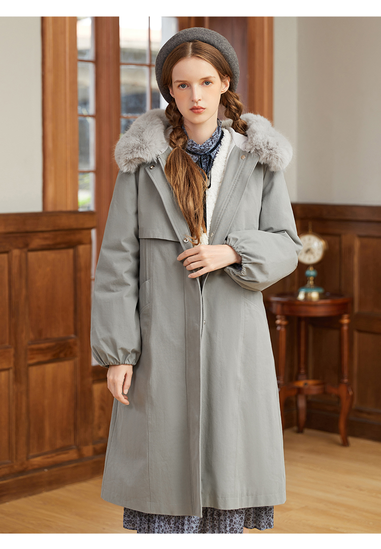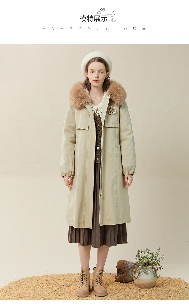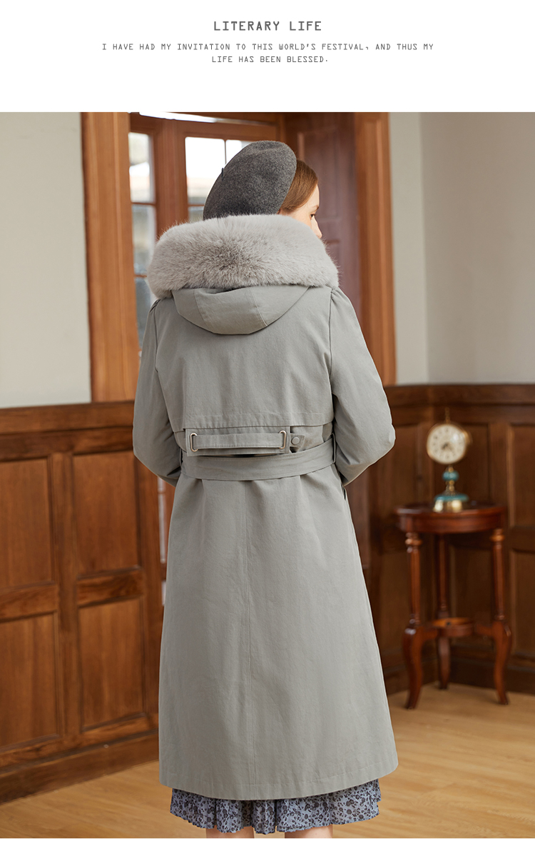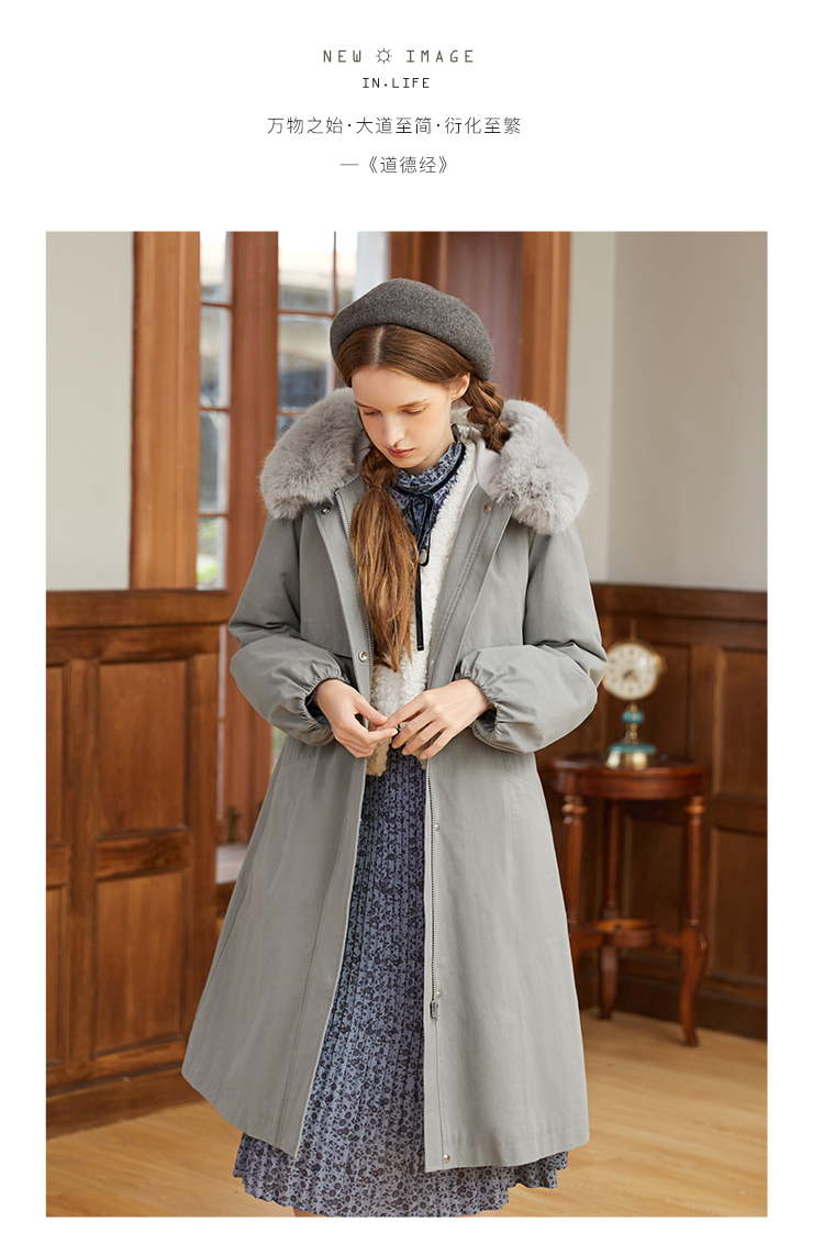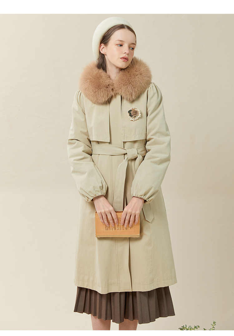 Famecoco范可儿收腰系带羽绒服女士长款过膝冬季保暖外套F228AH006