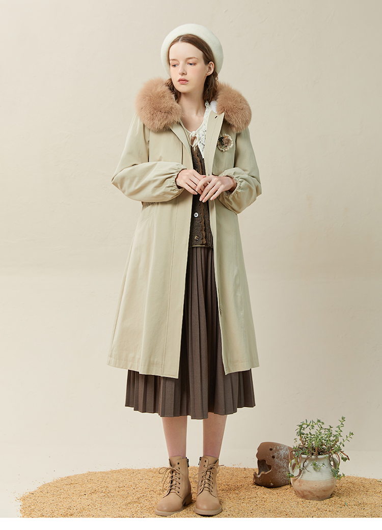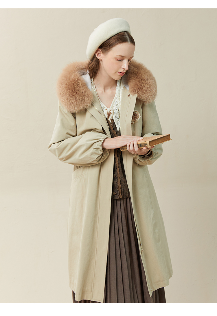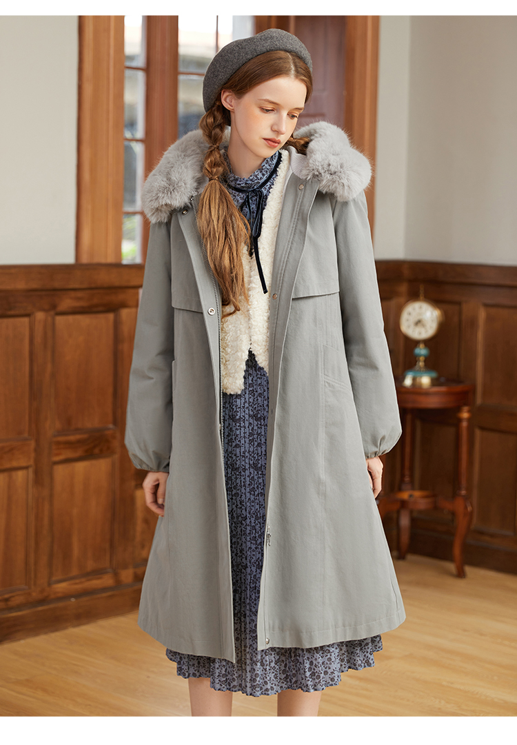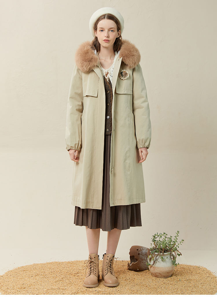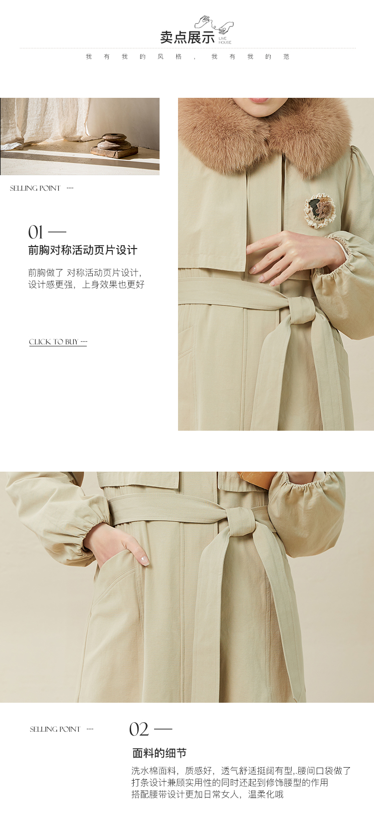 Famecoco范可儿收腰系带羽绒服女士长款过膝冬季保暖外套F228AH006