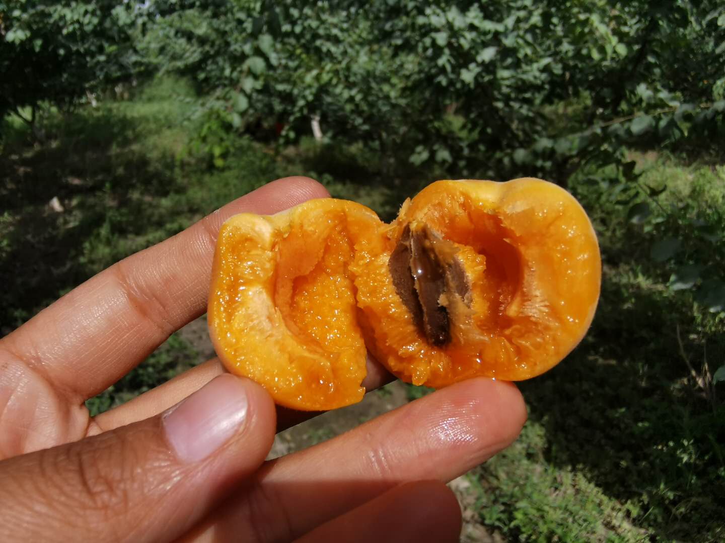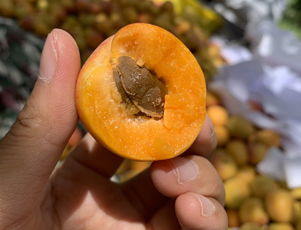 杏林位于新疆天山脚下的,靠天山融雪至清至纯的滋养,光热资源丰富,全年日照长达3500小时,昼夜温差大,有益于糖分的积累,同时着色也均匀自然,颜色很是诱人。