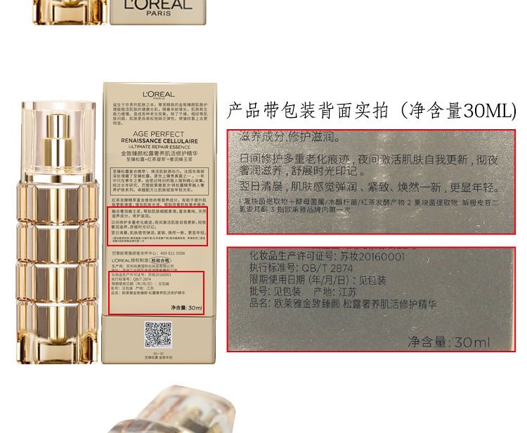 【预售 急单慎拍】欧莱雅金致臻颜松露奢养肌活修护精华30ml+30替换装