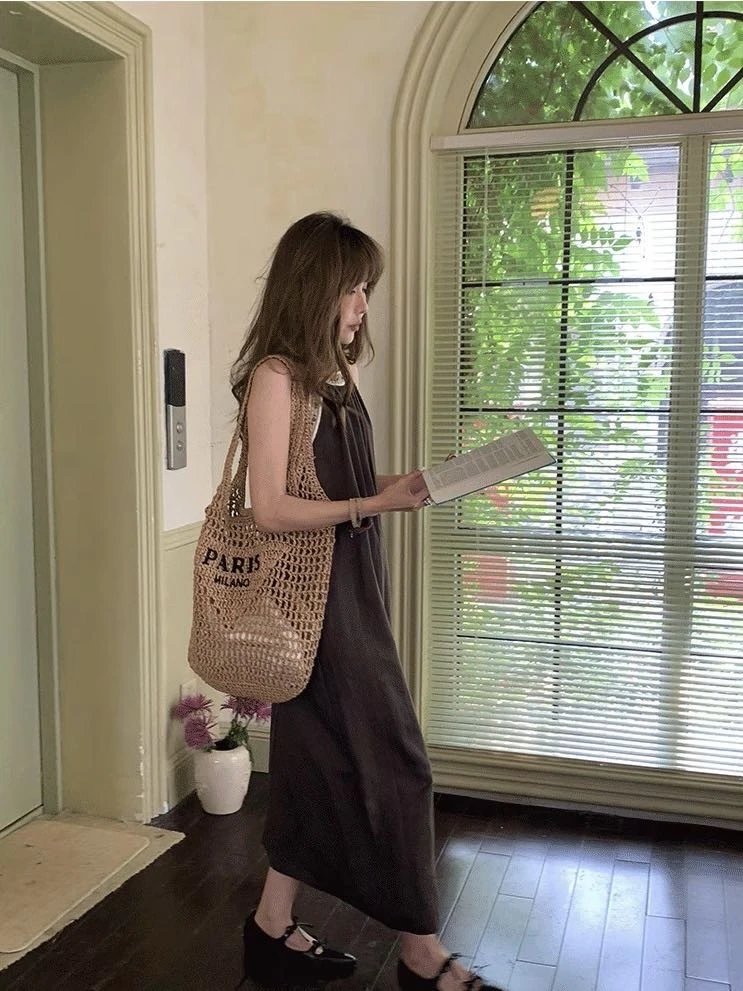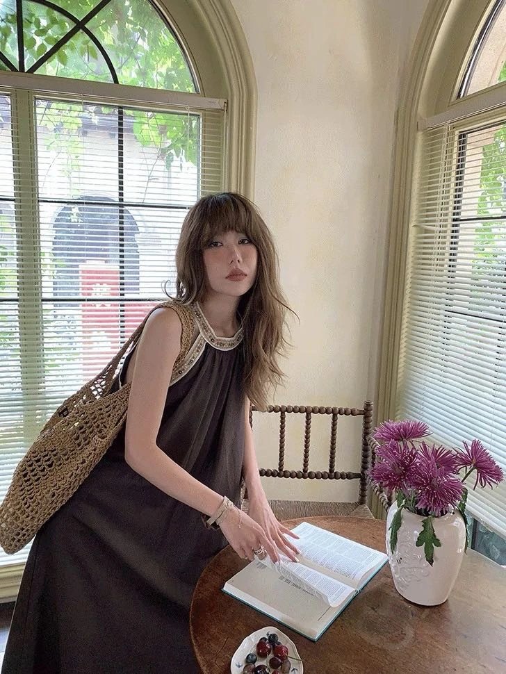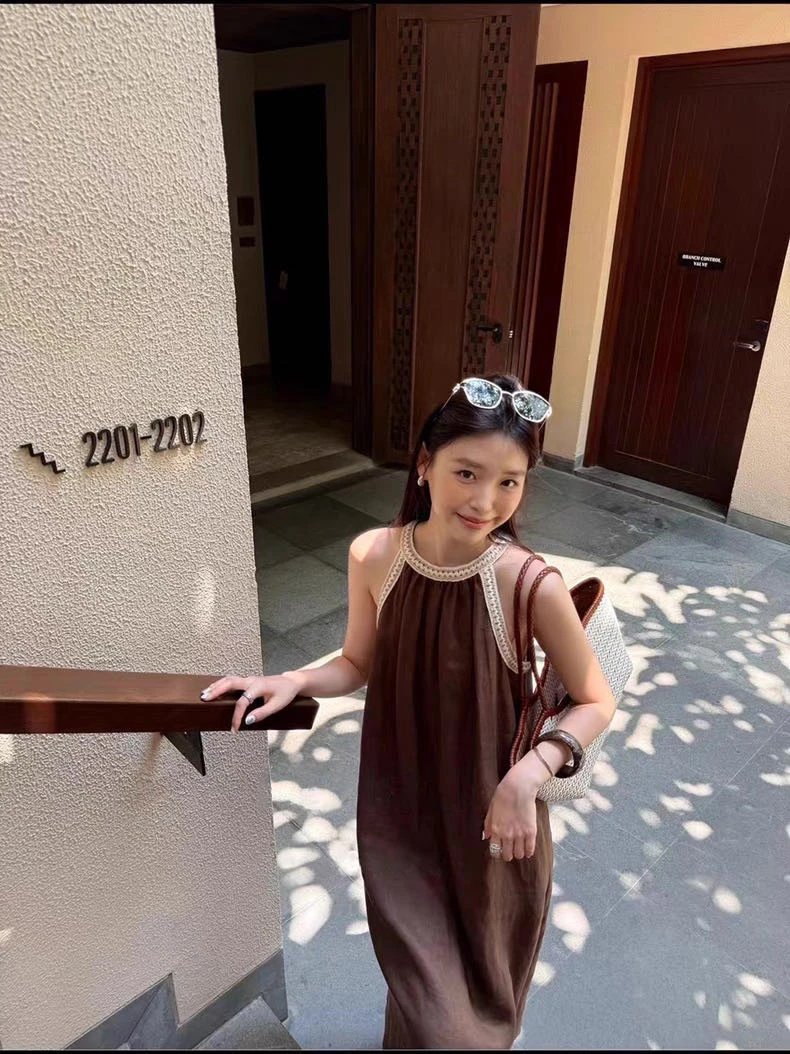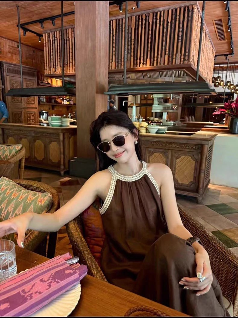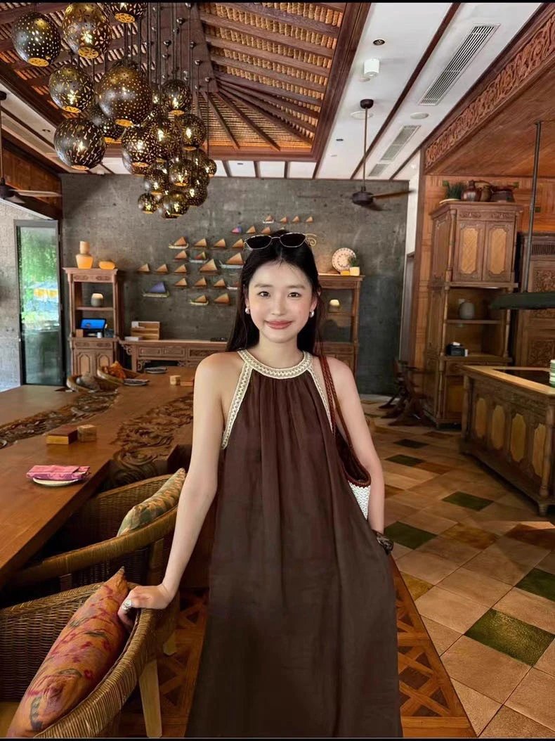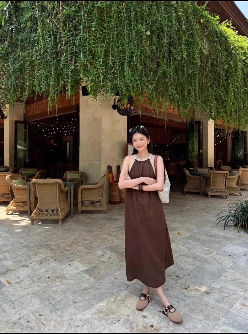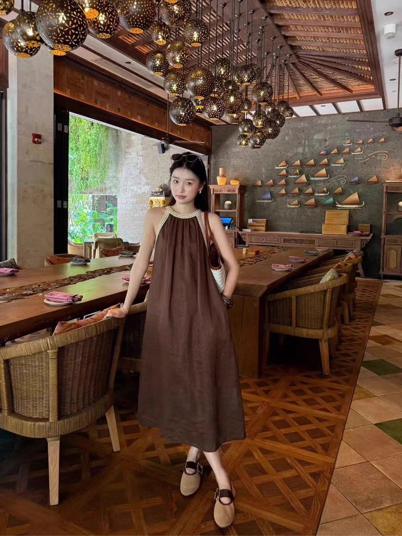 独家定制款⚠️小众设计⚠️自带天然呼吸感!Max*Mara同款进口面料❗️亚麻棉无袖挂脖民族风度假连衣裙!