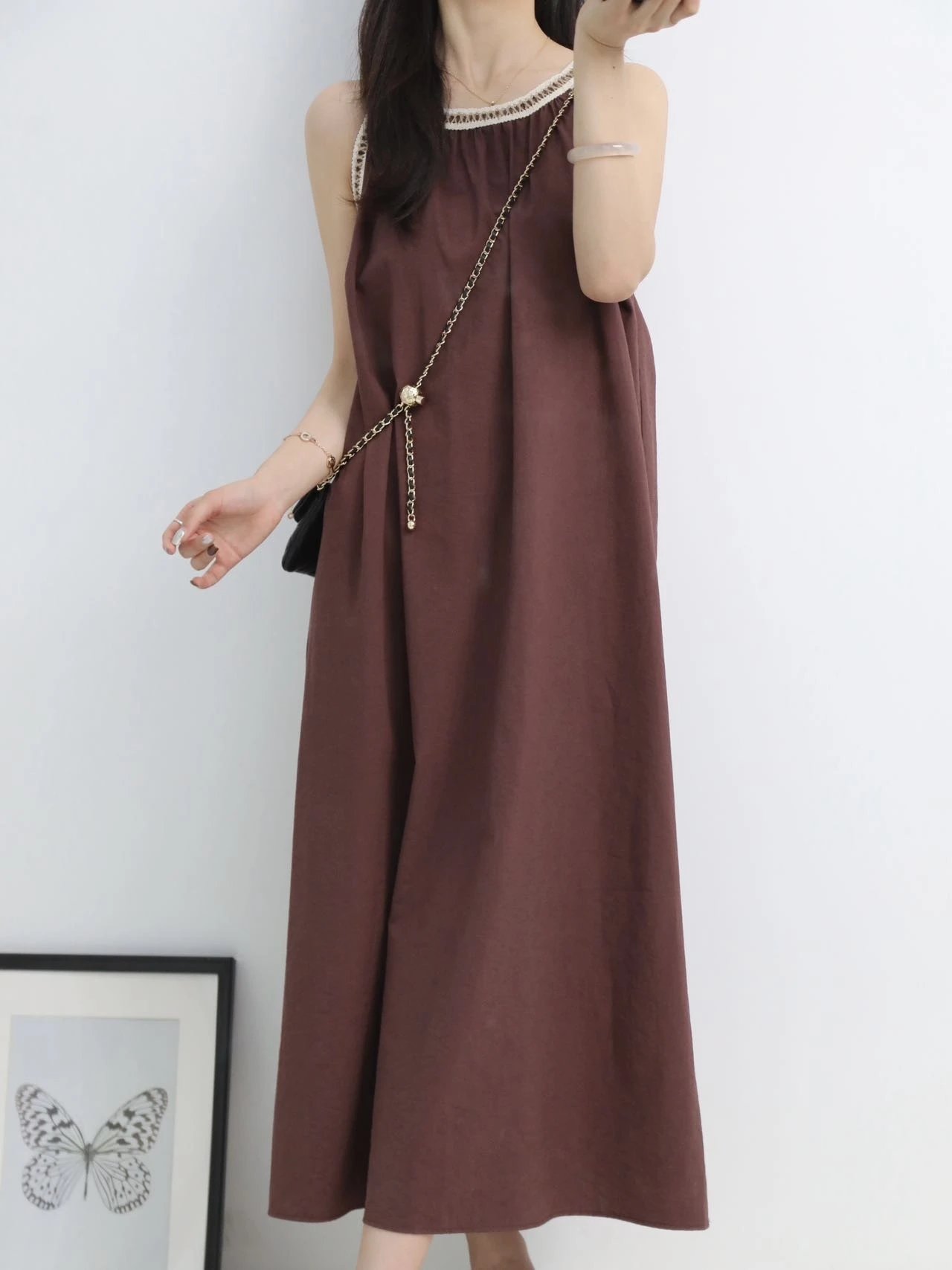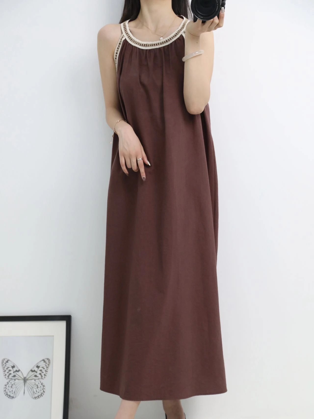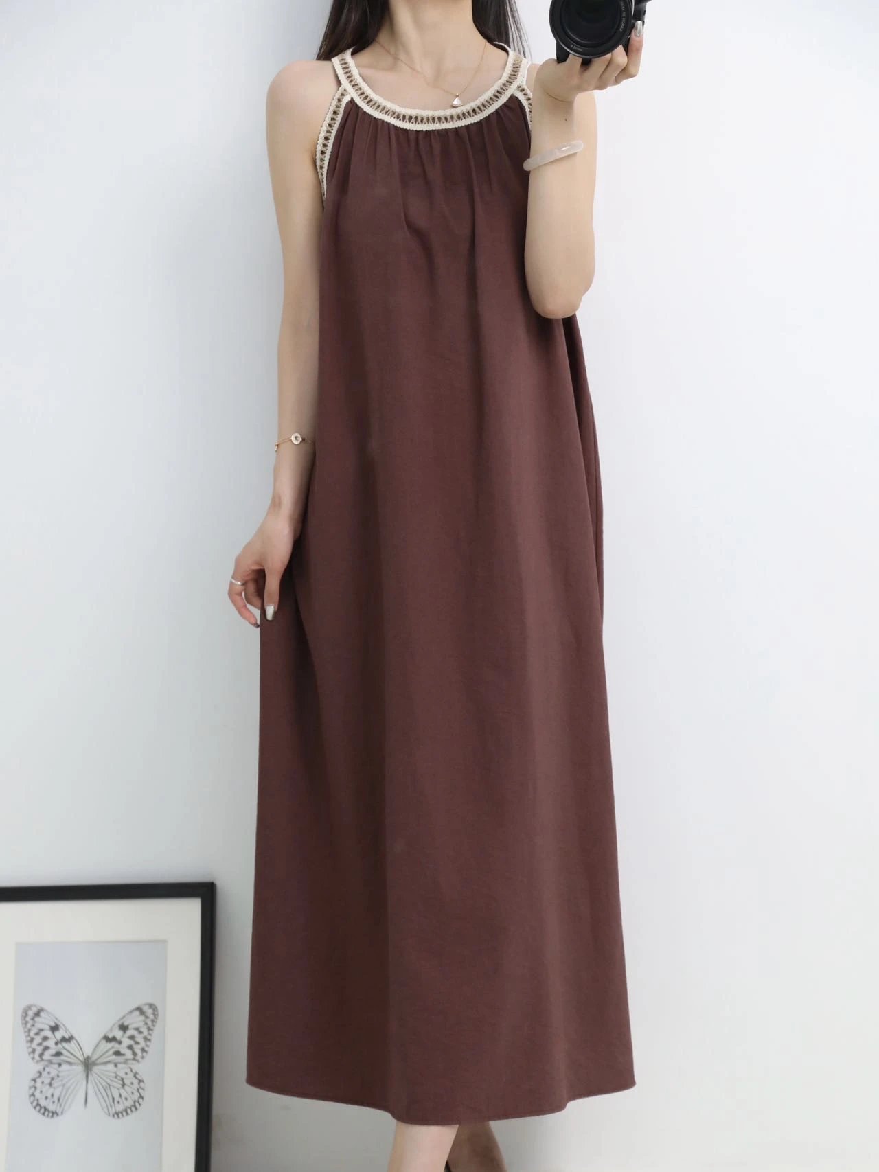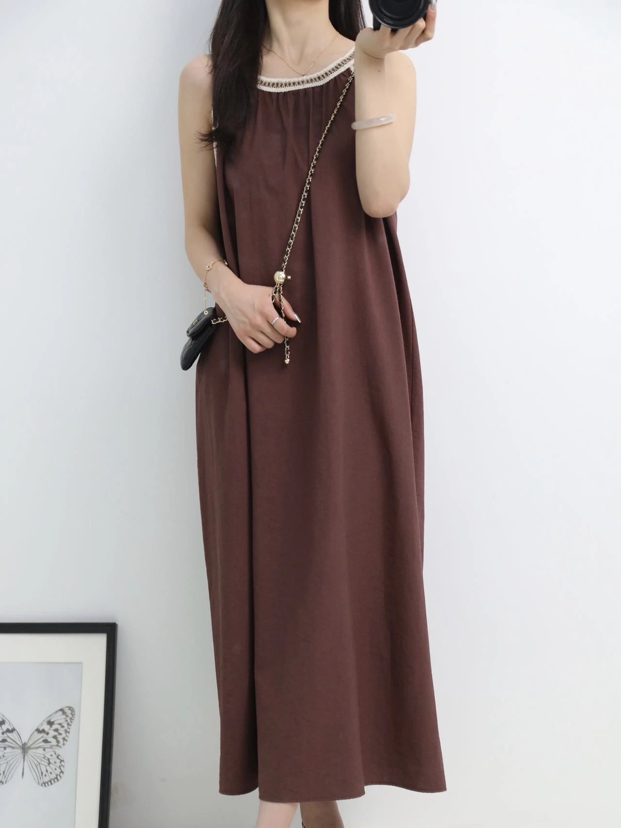 【商品品名】摩卡慕斯~亚麻棉连衣裙