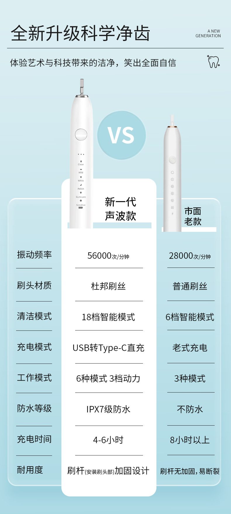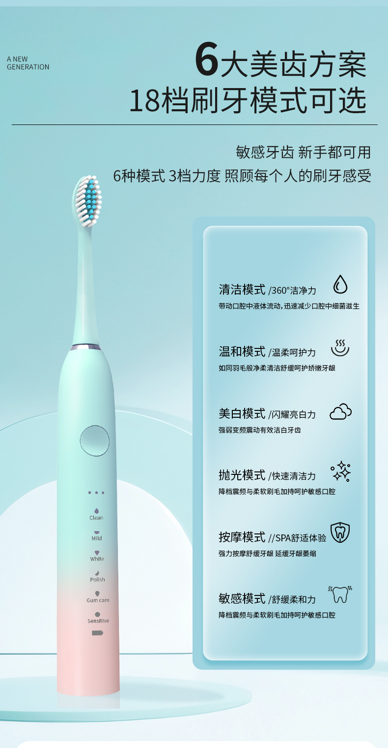 【高效清洁❗️保护牙龈】软毛充电款全自动金属轴18档电动牙刷冲牙器学生情侣款。ya