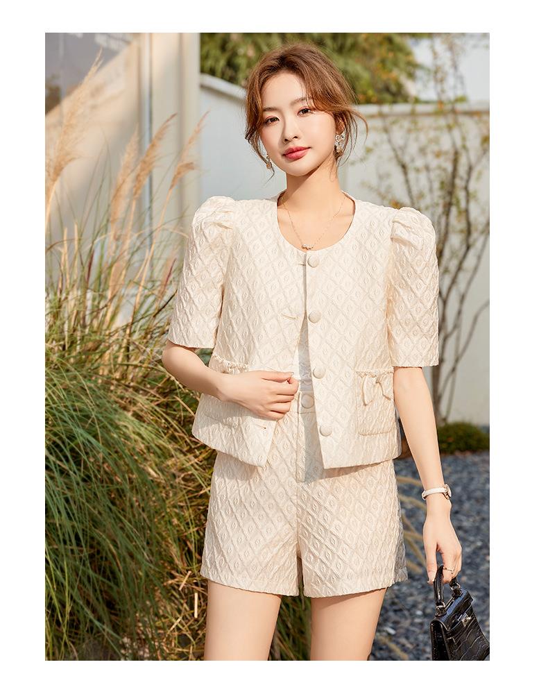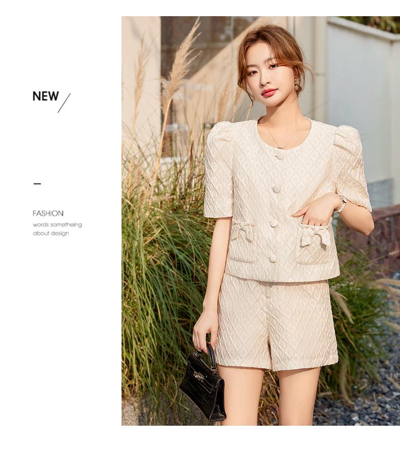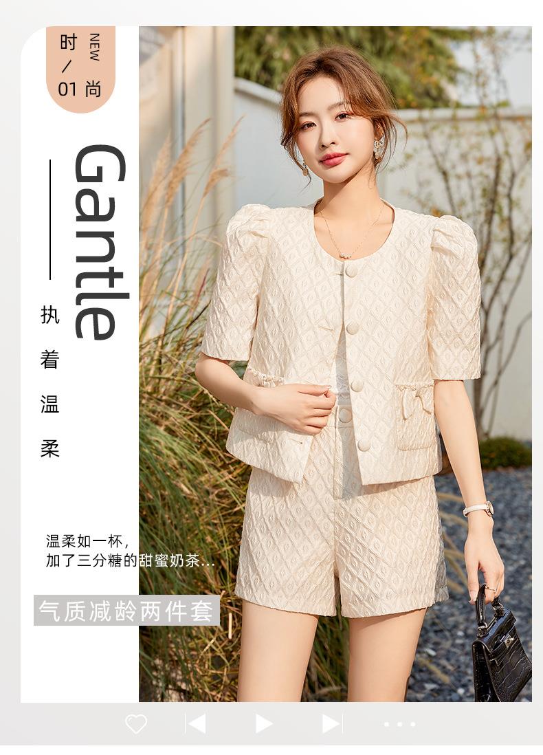 娜璐多 小香风西装套装女夏季新款气质女神范高级感短袖短裤西服两件套女