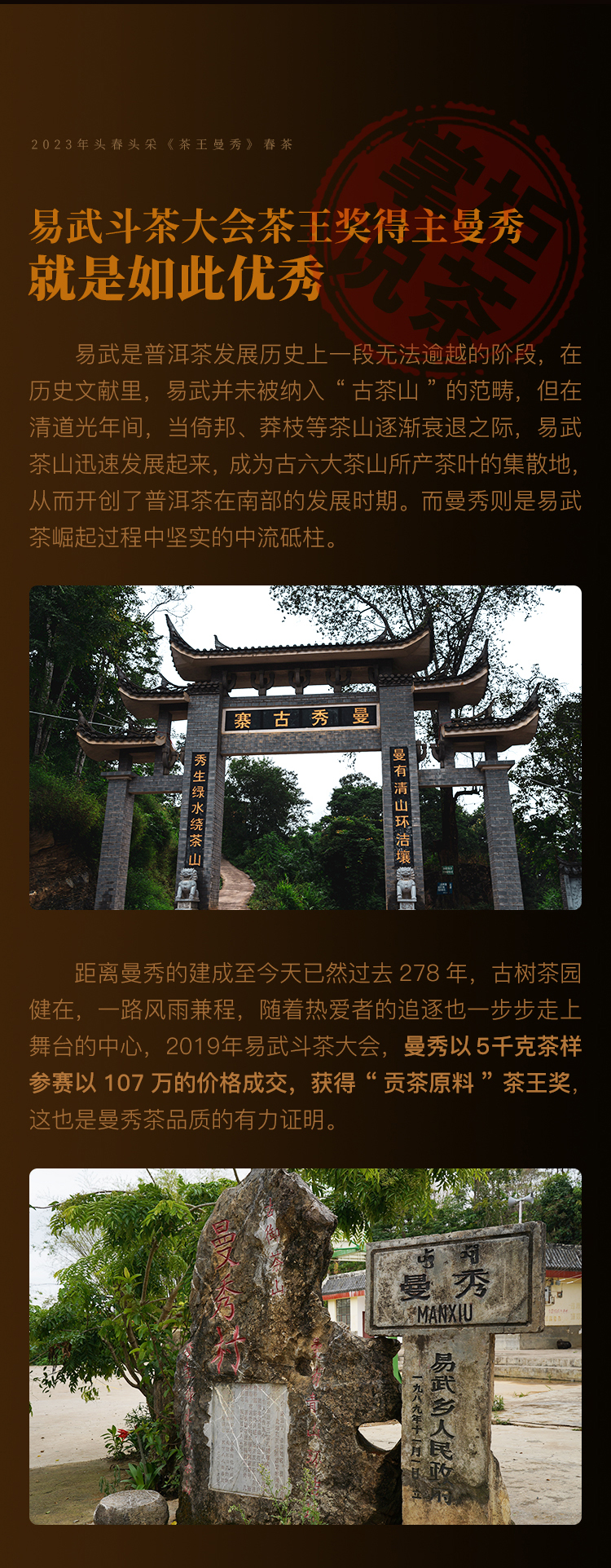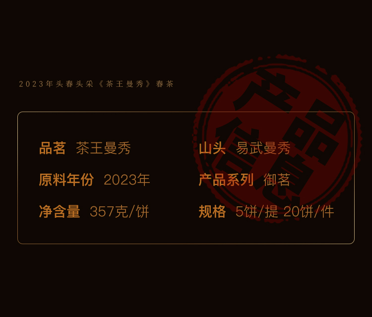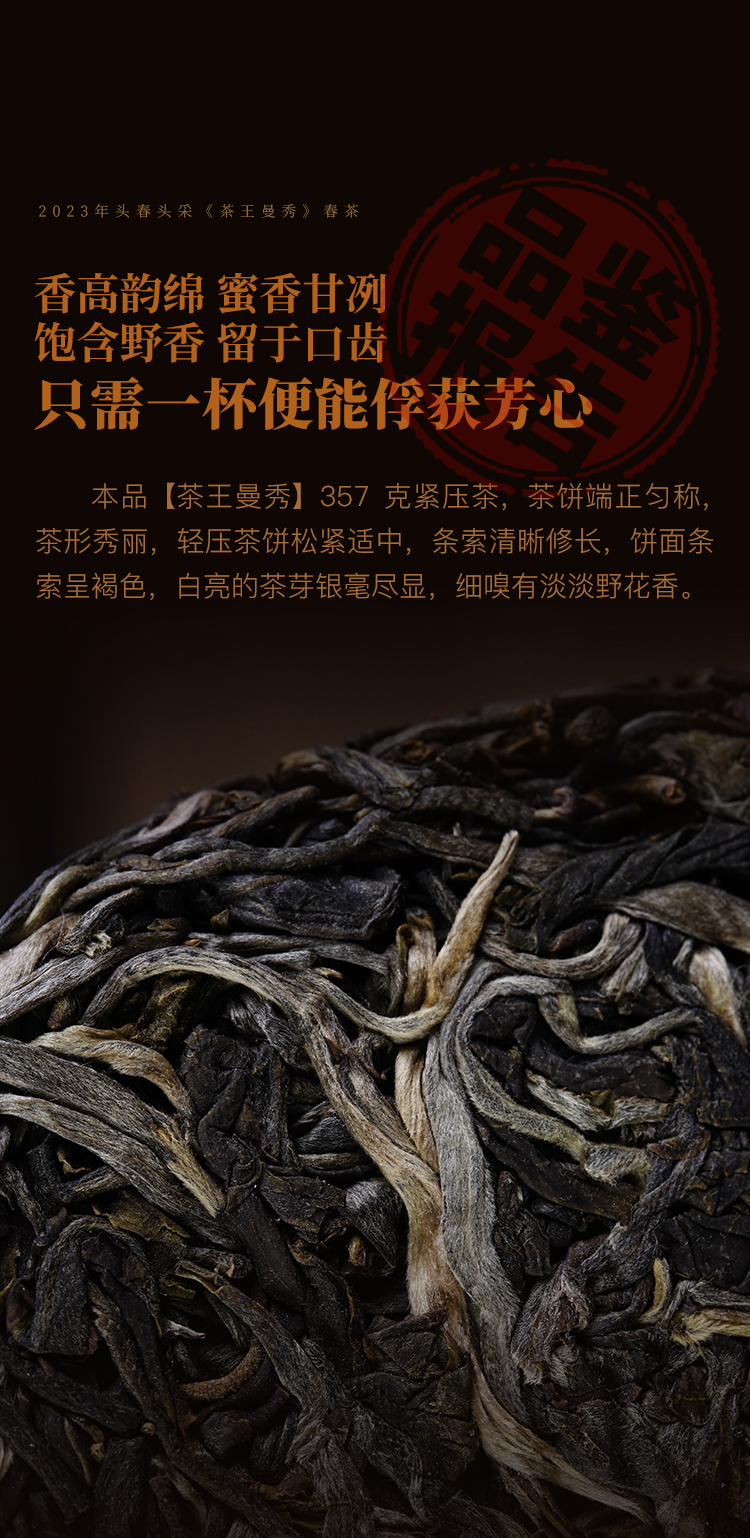 2023年头春【茶王曼秀】易武斗茶大会茶王奖得主曼秀 普洱茶生茶357g/饼 5饼/提 20饼/件 拍5发6拍20发25