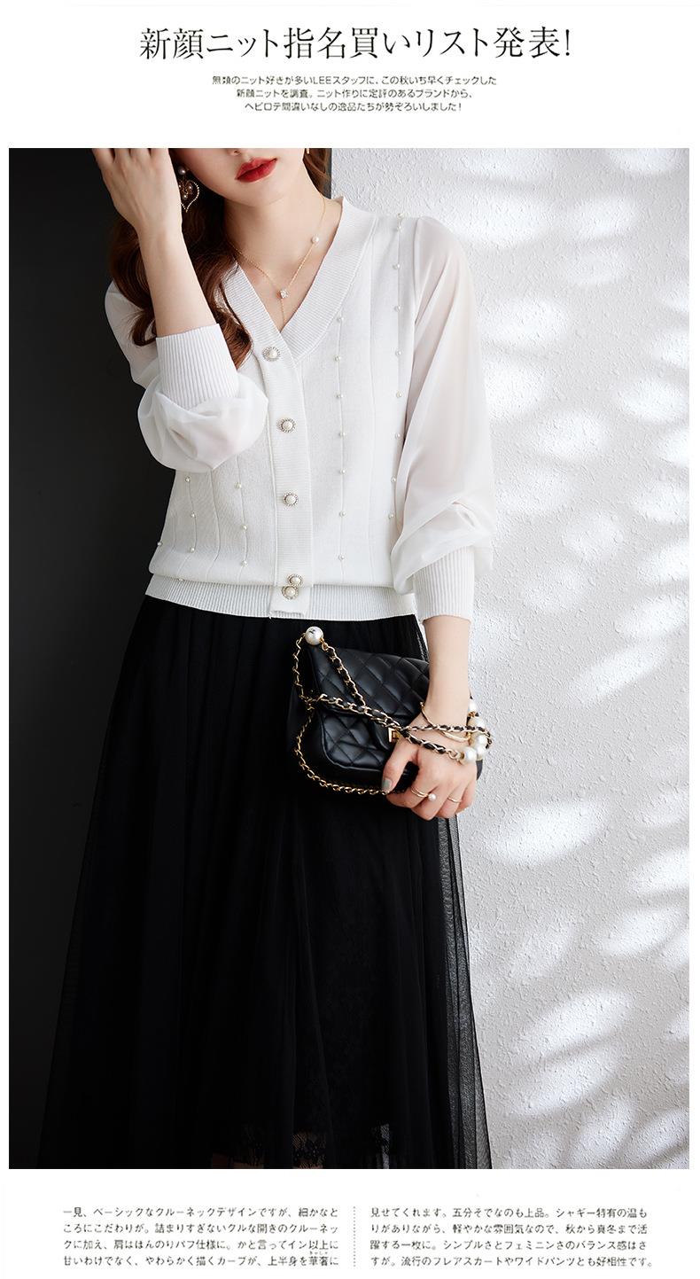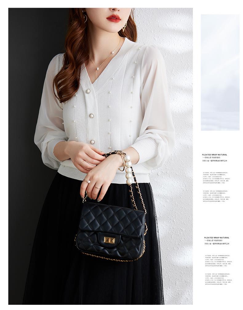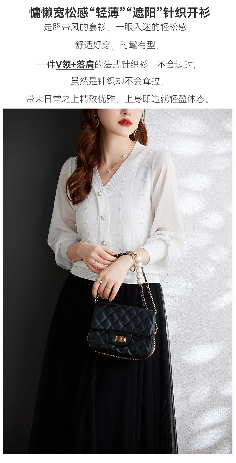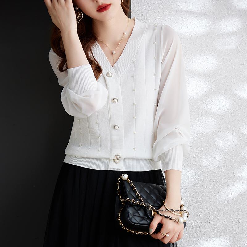 娜璐多 钉珠长袖针织衫温柔风2023早秋新款时尚气质雪纺上衣女拼接内搭