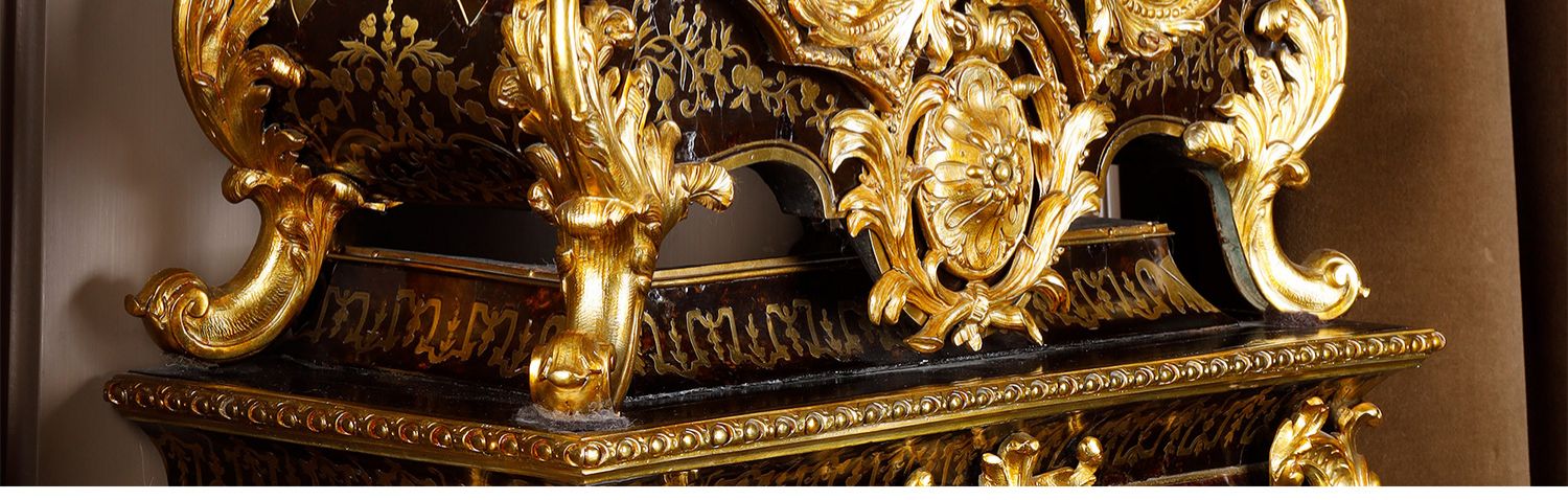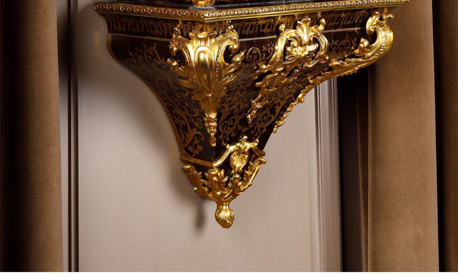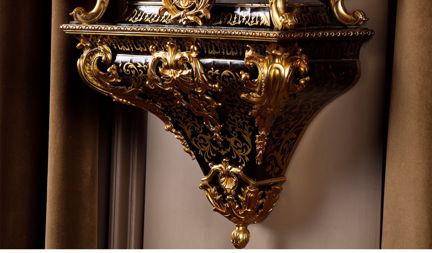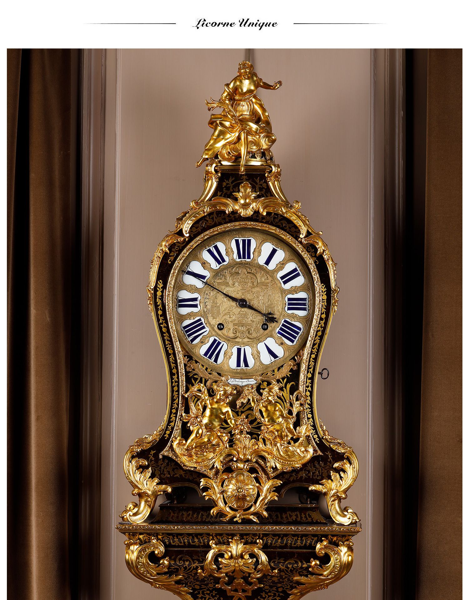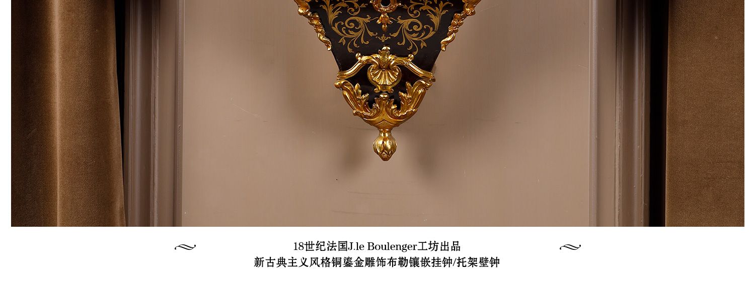 独角鹿西洋古董新古典主义风格铜鎏金雕饰布勒镶嵌挂钟托架壁钟