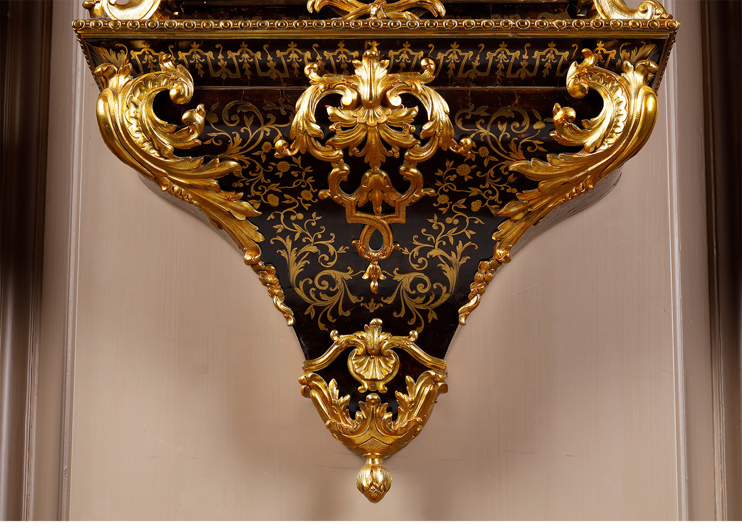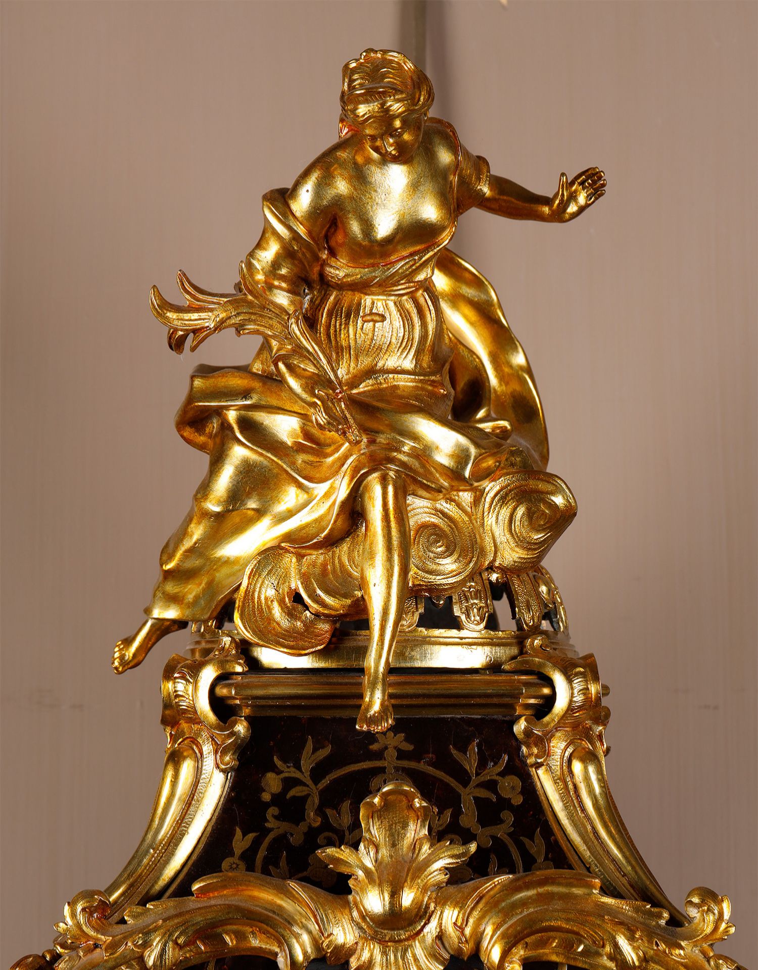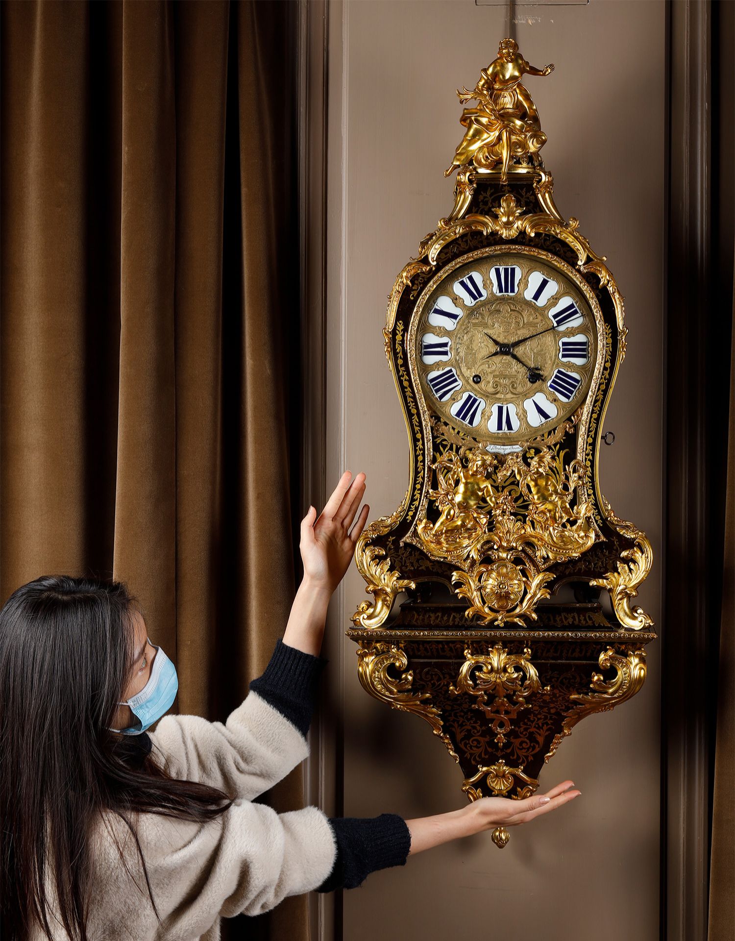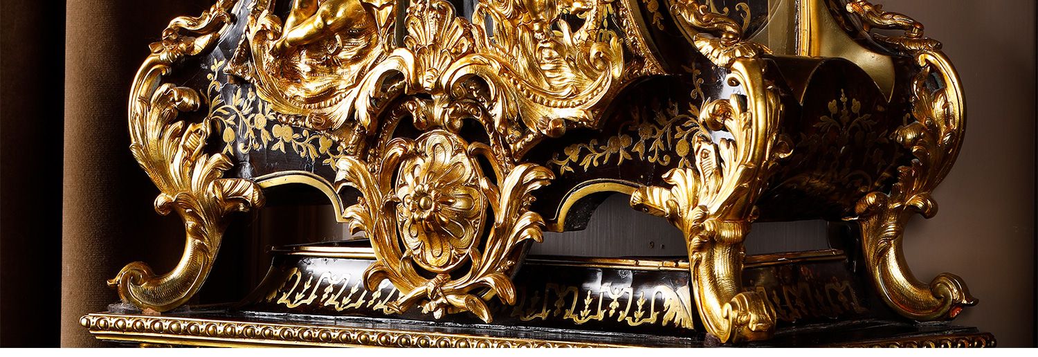 独角鹿西洋古董新古典主义风格铜鎏金雕饰布勒镶嵌挂钟托架壁钟