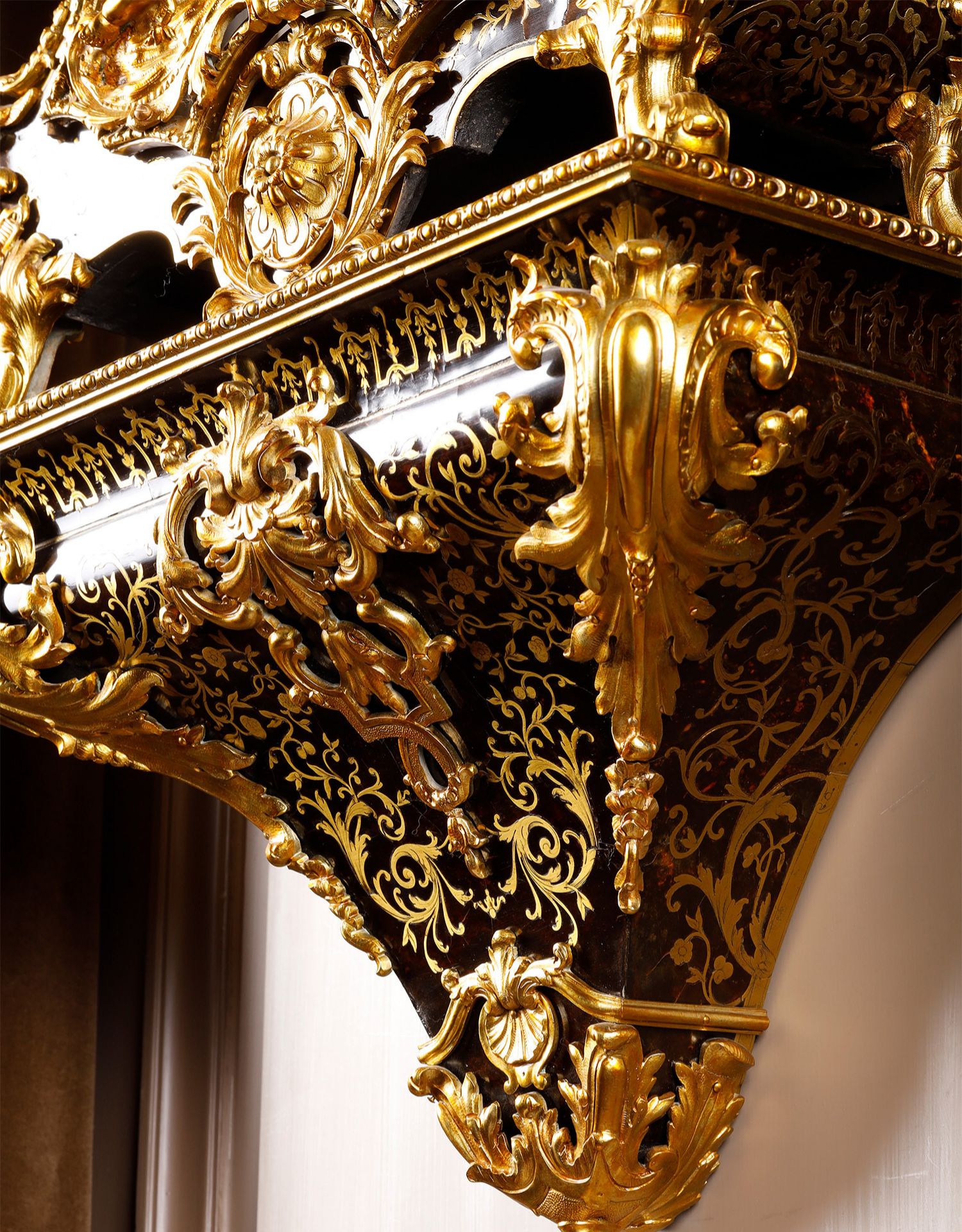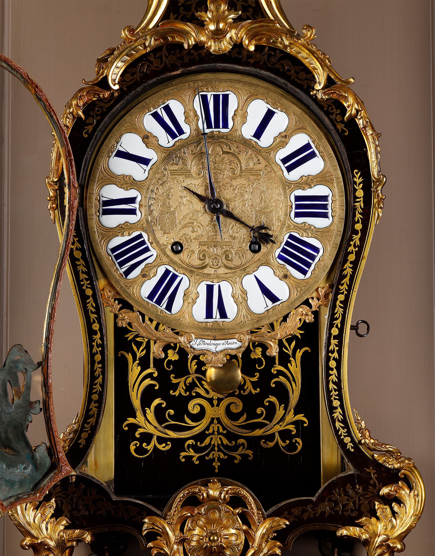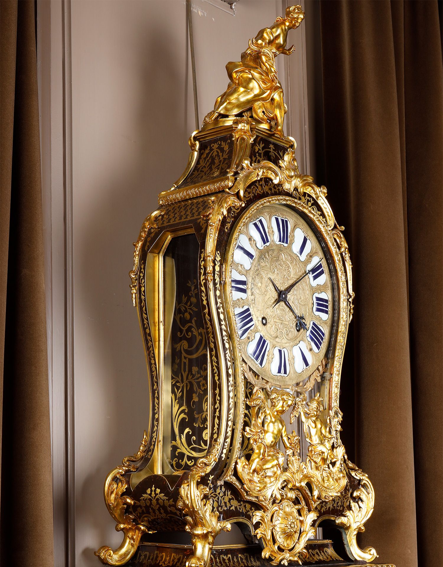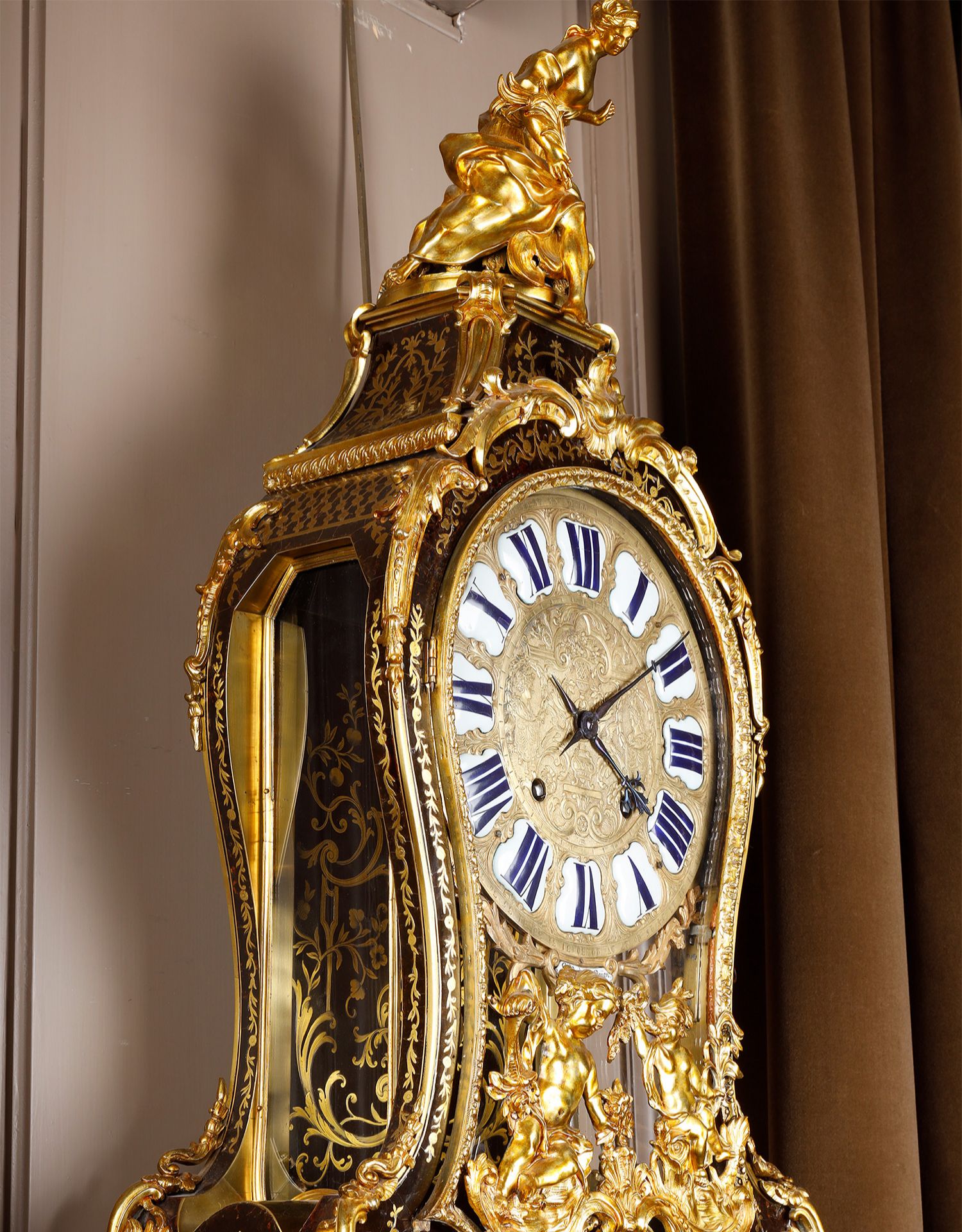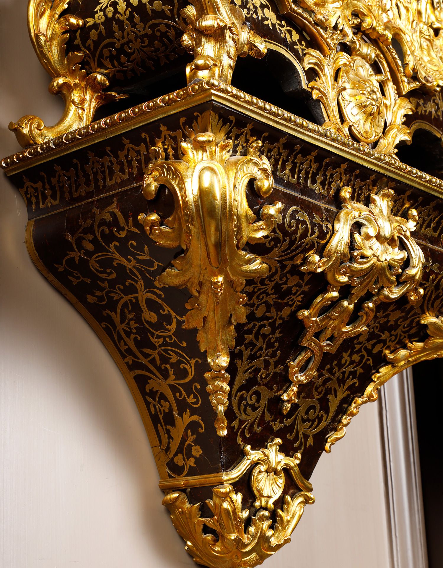 独角鹿西洋古董新古典主义风格铜鎏金雕饰布勒镶嵌挂钟托架壁钟