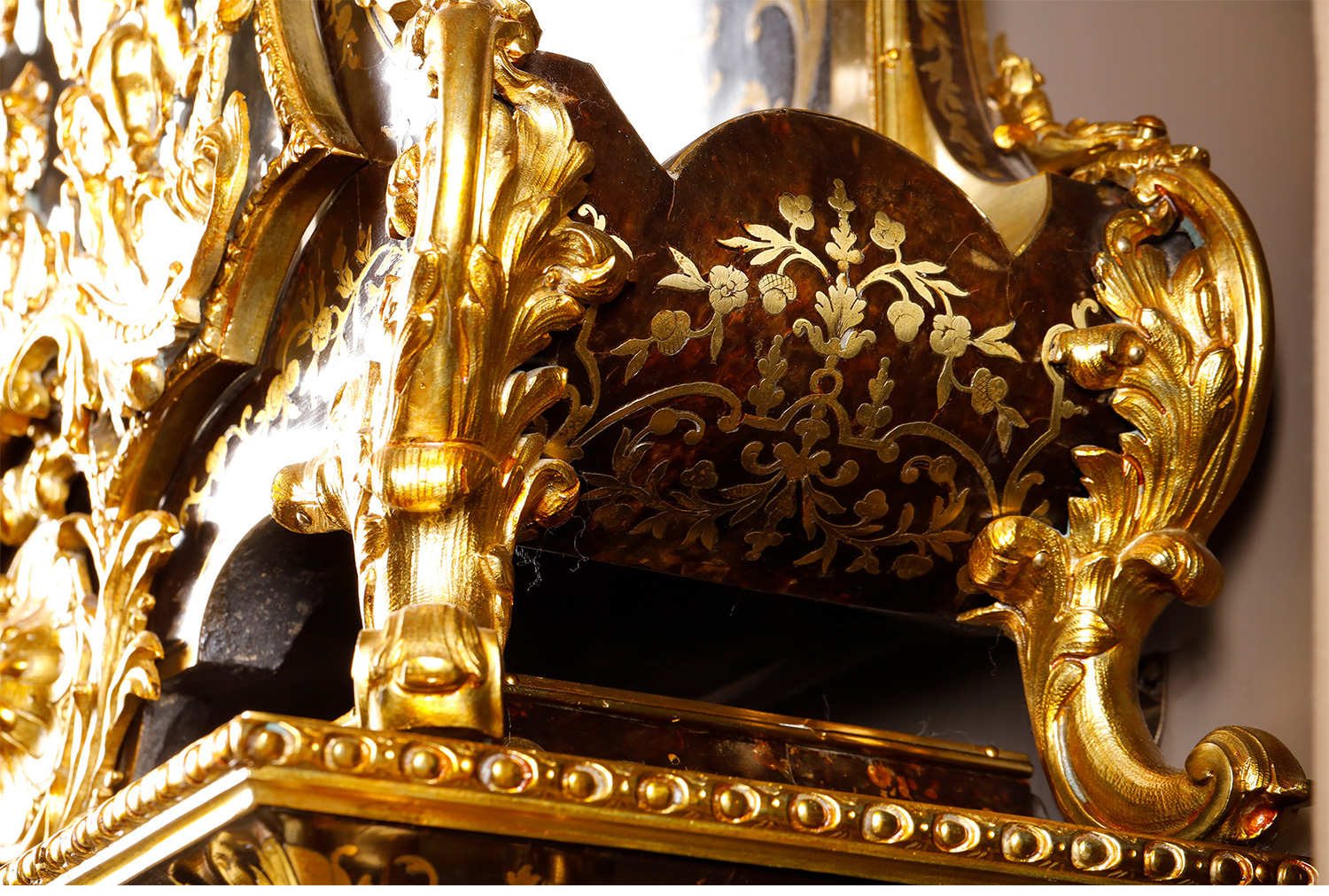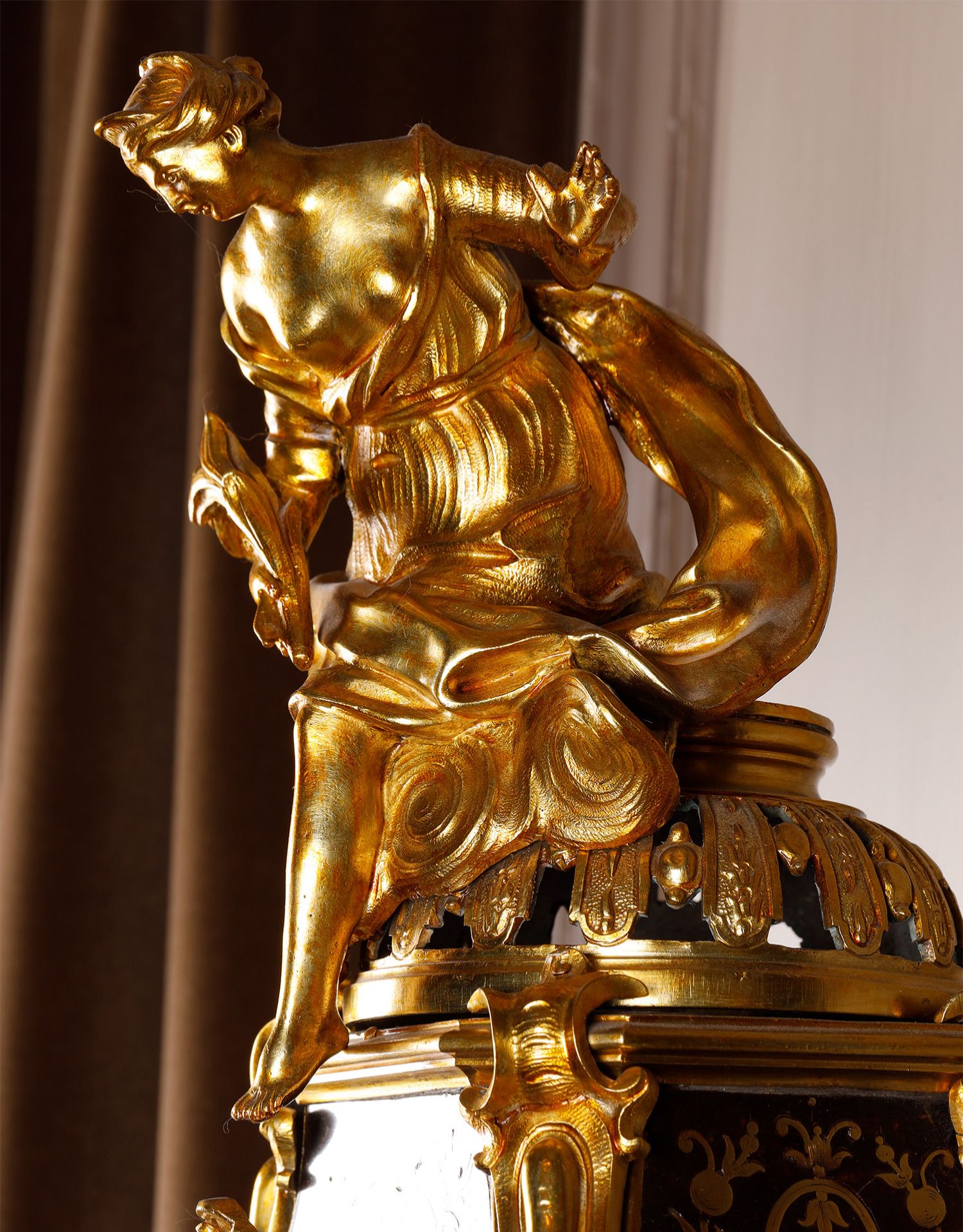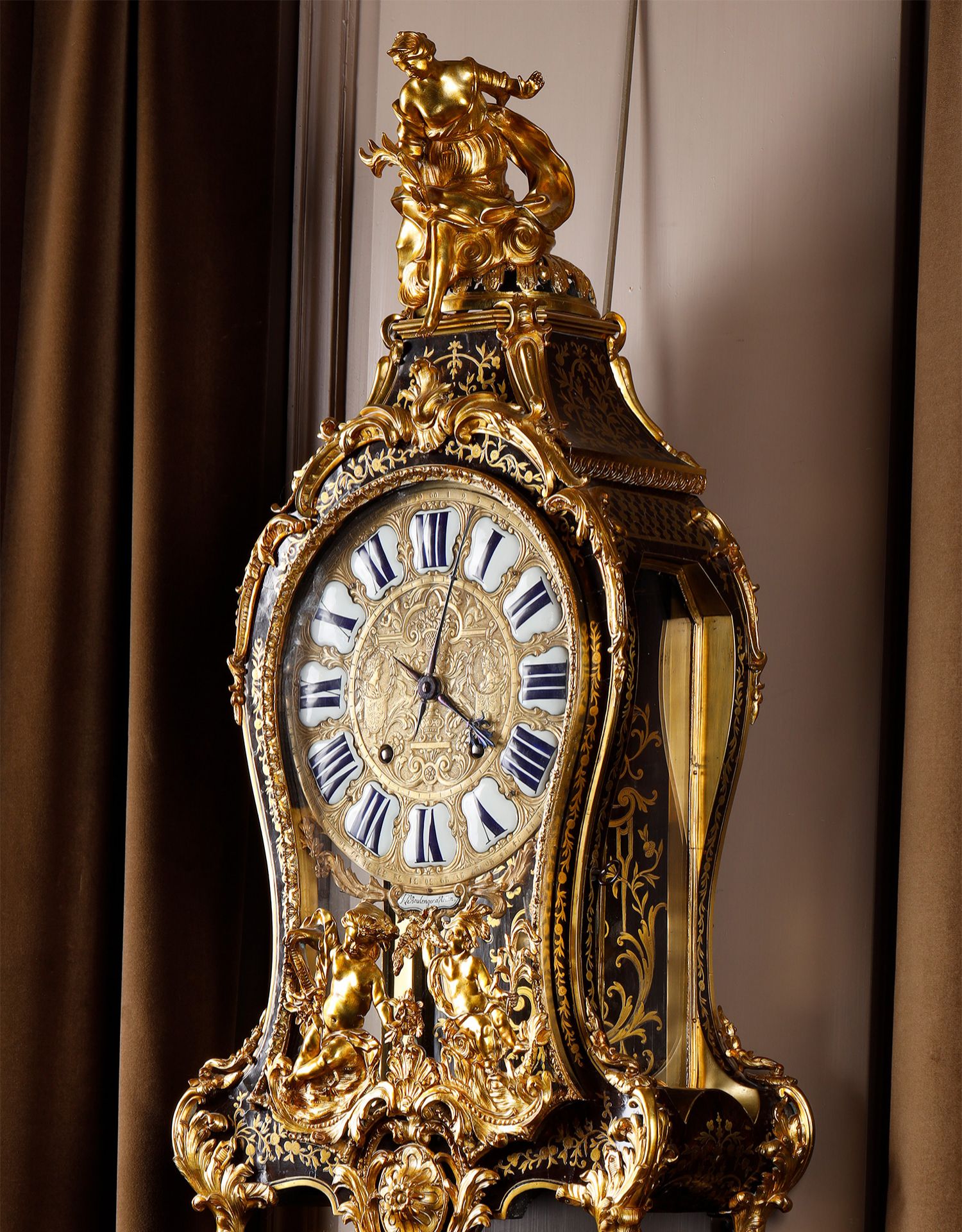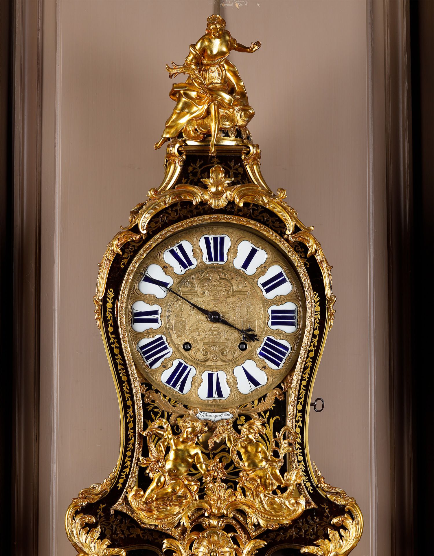 独角鹿西洋古董新古典主义风格铜鎏金雕饰布勒镶嵌挂钟托架壁钟