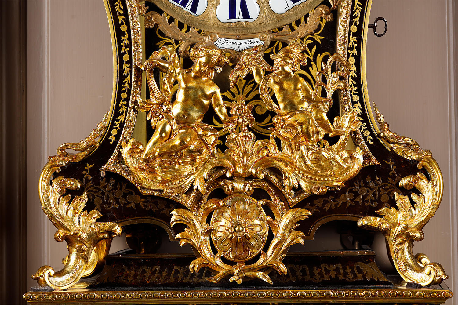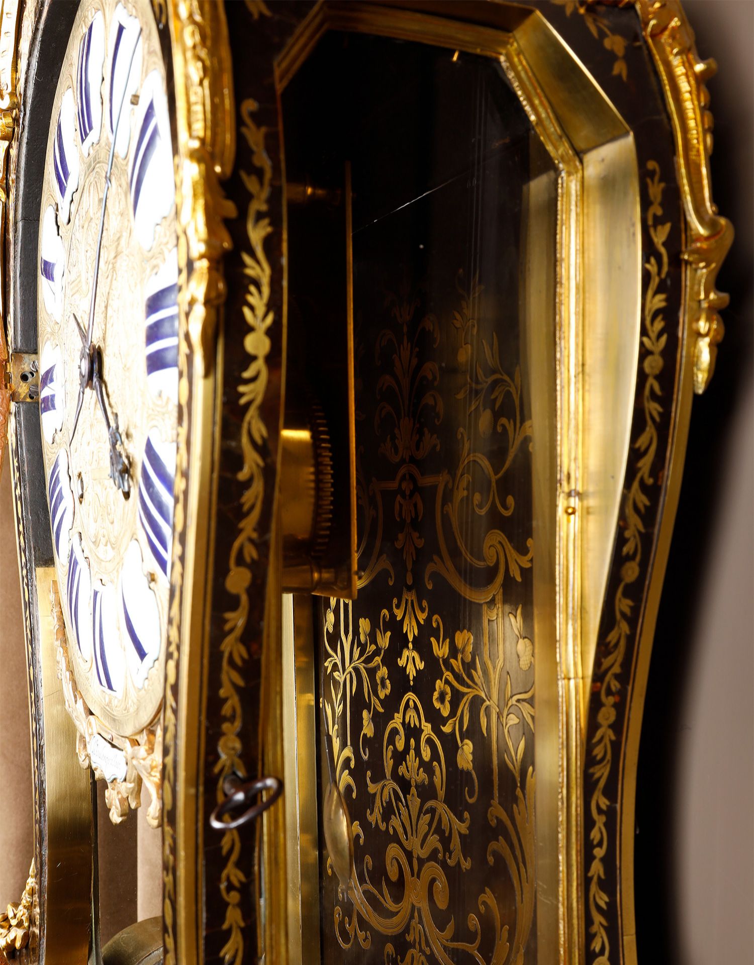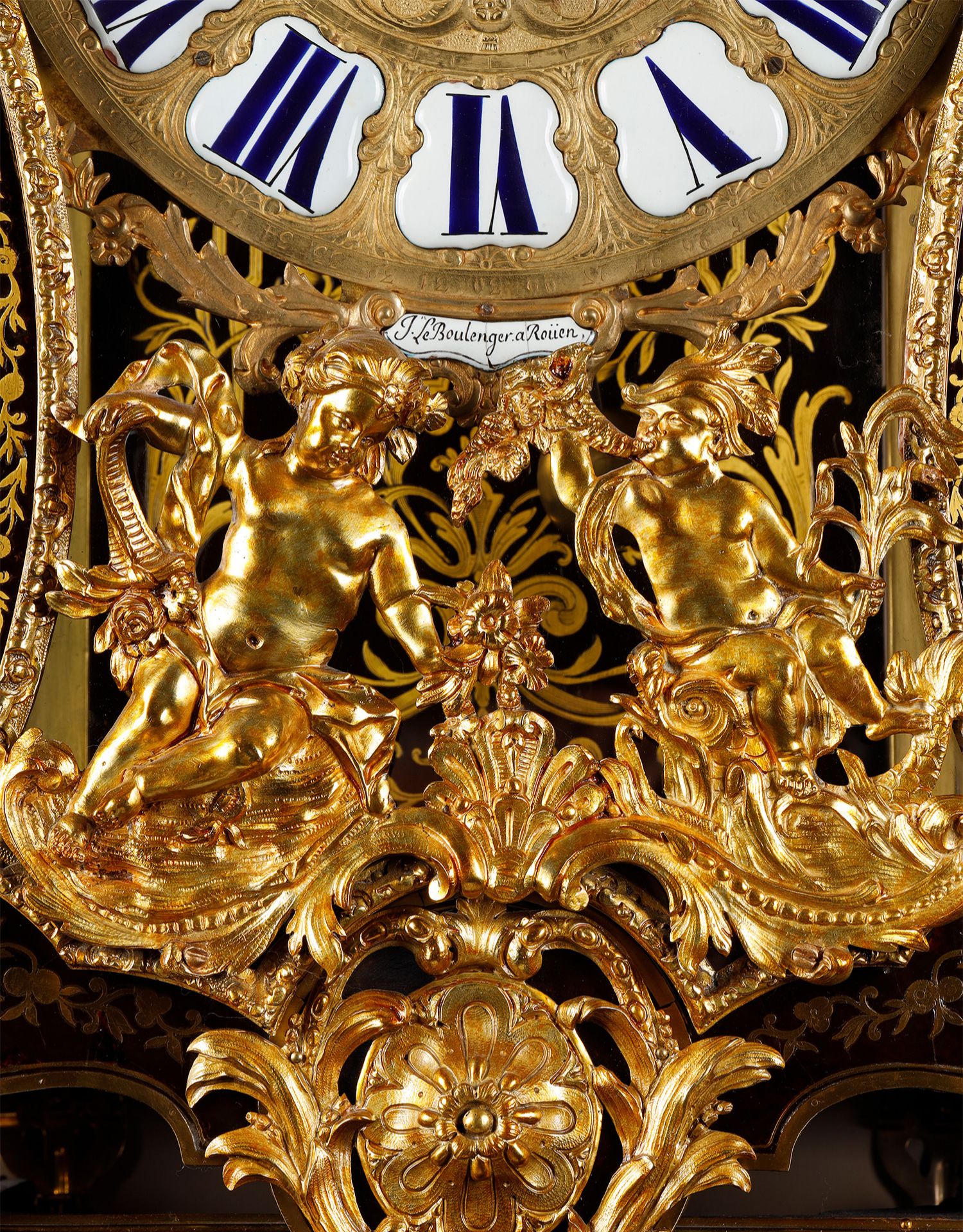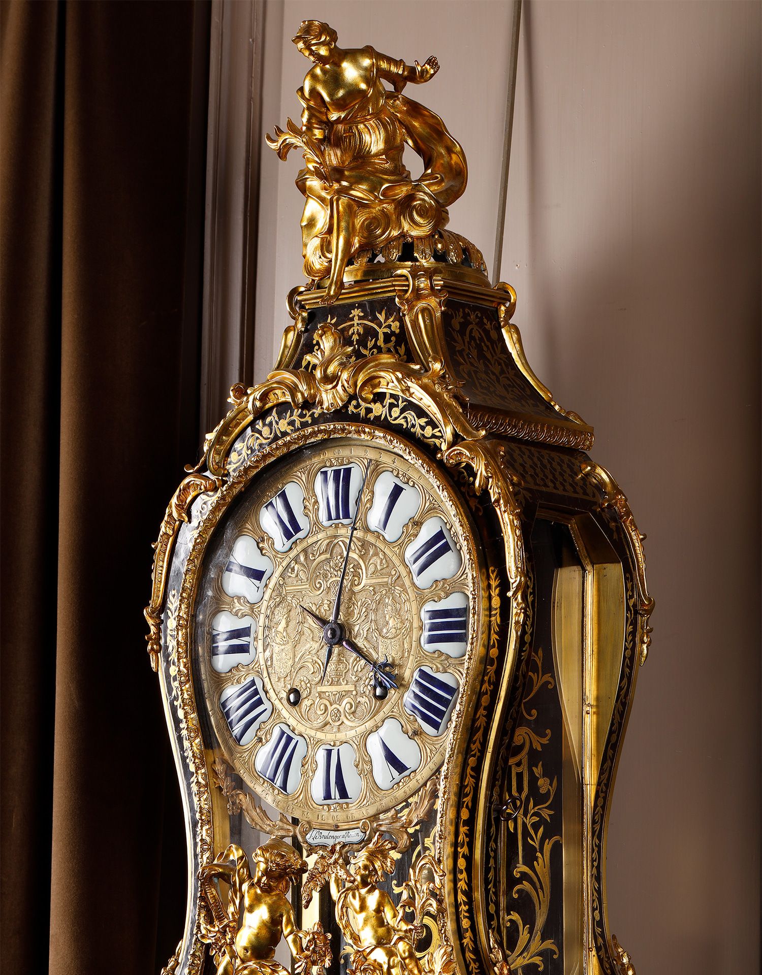 独角鹿西洋古董新古典主义风格铜鎏金雕饰布勒镶嵌挂钟托架壁钟