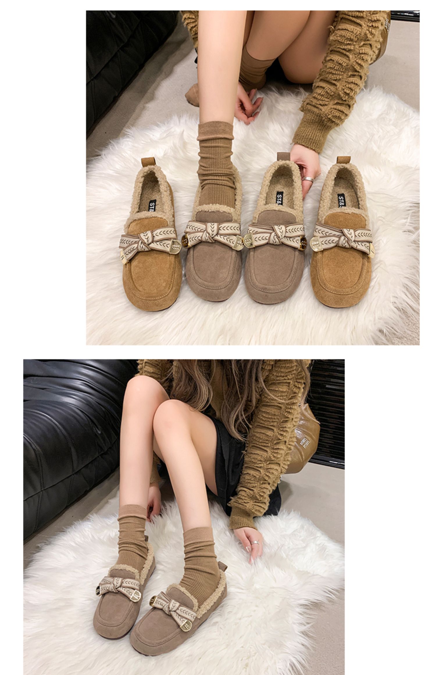 【绒里可选】星期六蝴蝶结甜美豆豆鞋SSC3111F4E/SSC4111F7D