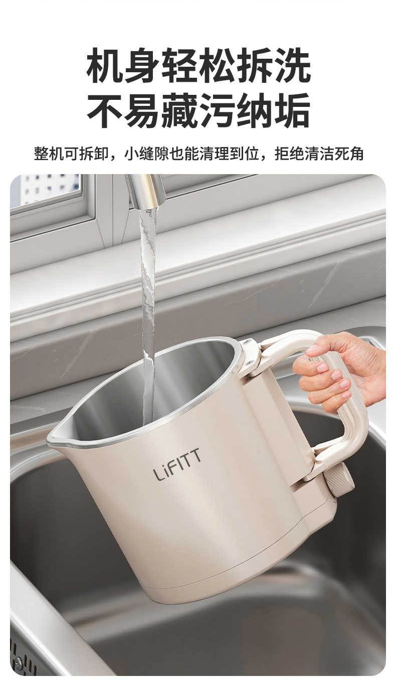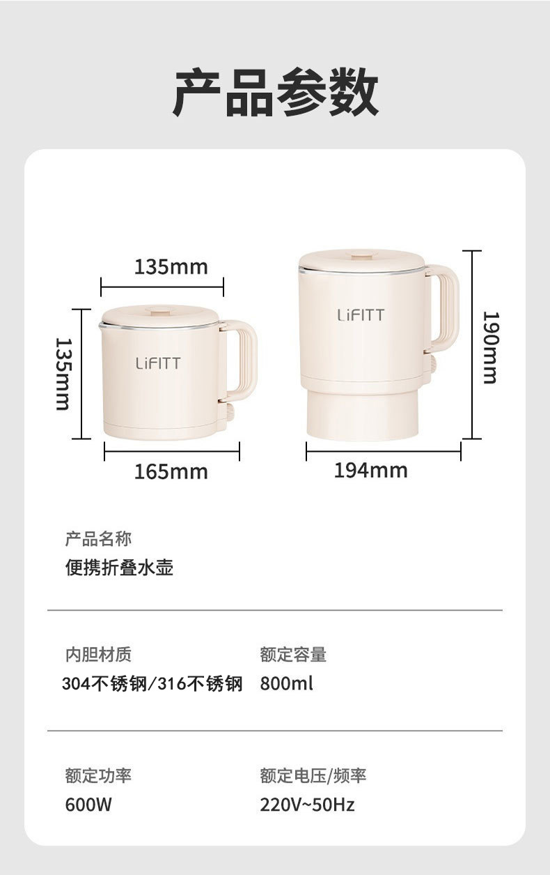 【可折叠 杯壶锅三合一】乐斐便携式折叠水壶CQ-8 一壶多用 即是烧水壶也是电煮锅 两档调温 可拆易清洗 出差/旅行/宿舍必备