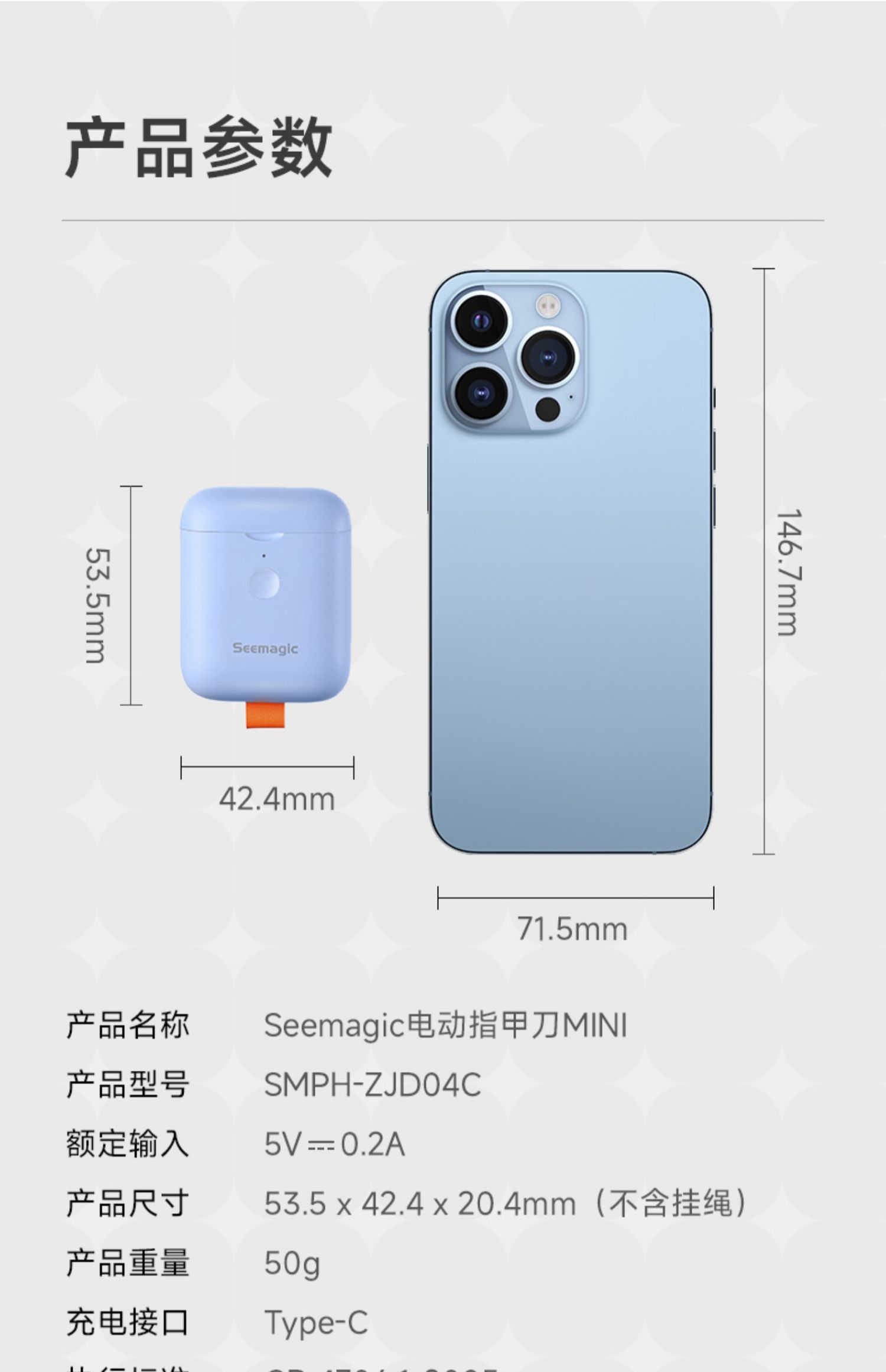Seemagic醒刻电动指甲刀mini磨甲器全自动修甲钳婴儿老人指甲剪