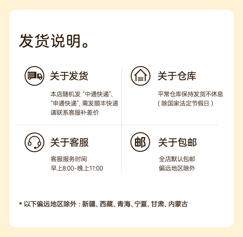 【不发货地区】甘肃、内蒙古、宁夏、青海、新疆、西藏