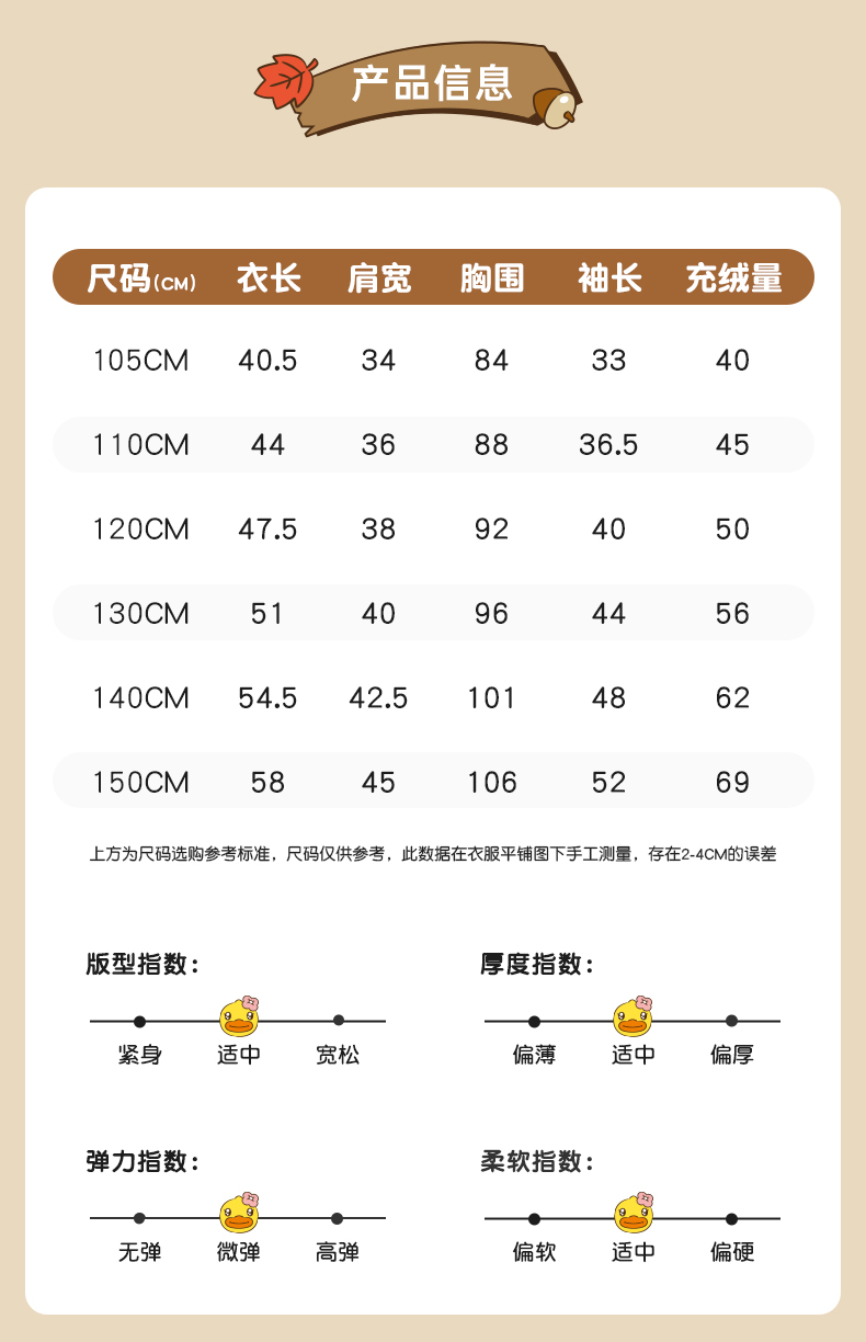 B.DUCK小黄鸭童装冬季羽绒服105-150 BF5416055