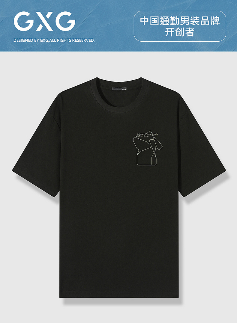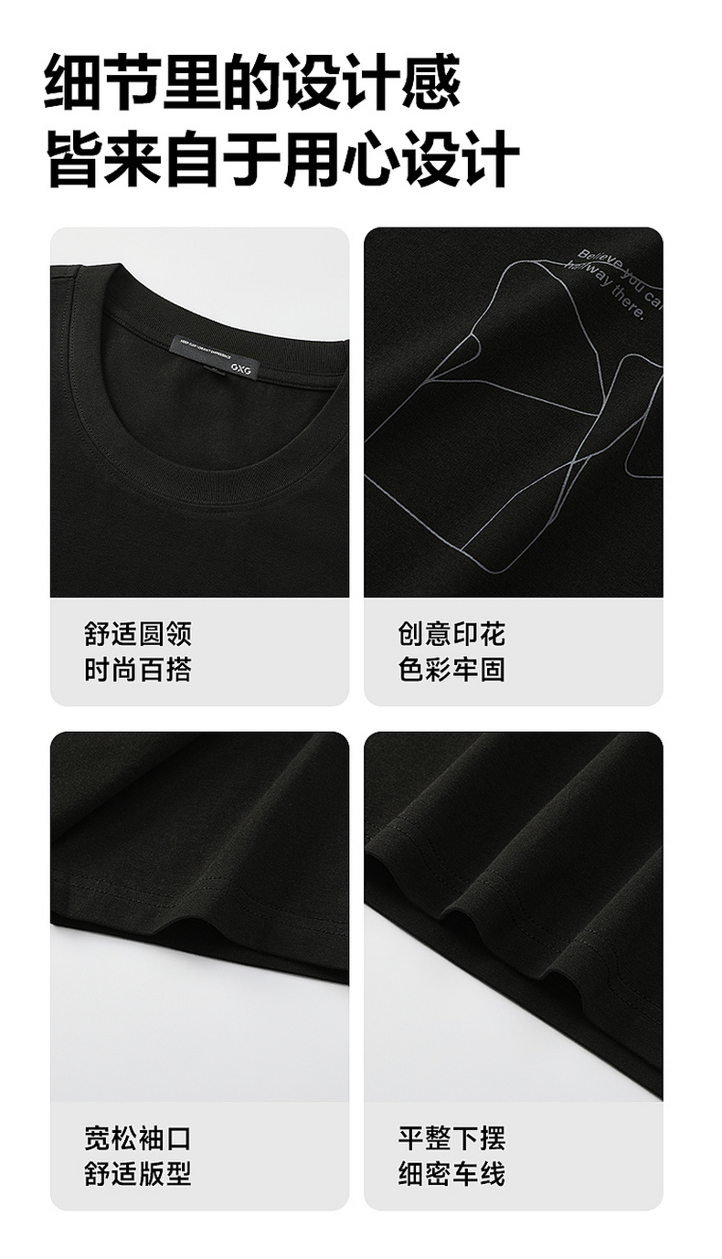 GXG男装【100%棉】夏季时尚撞色印花男士圆领百搭短袖T恤K&C