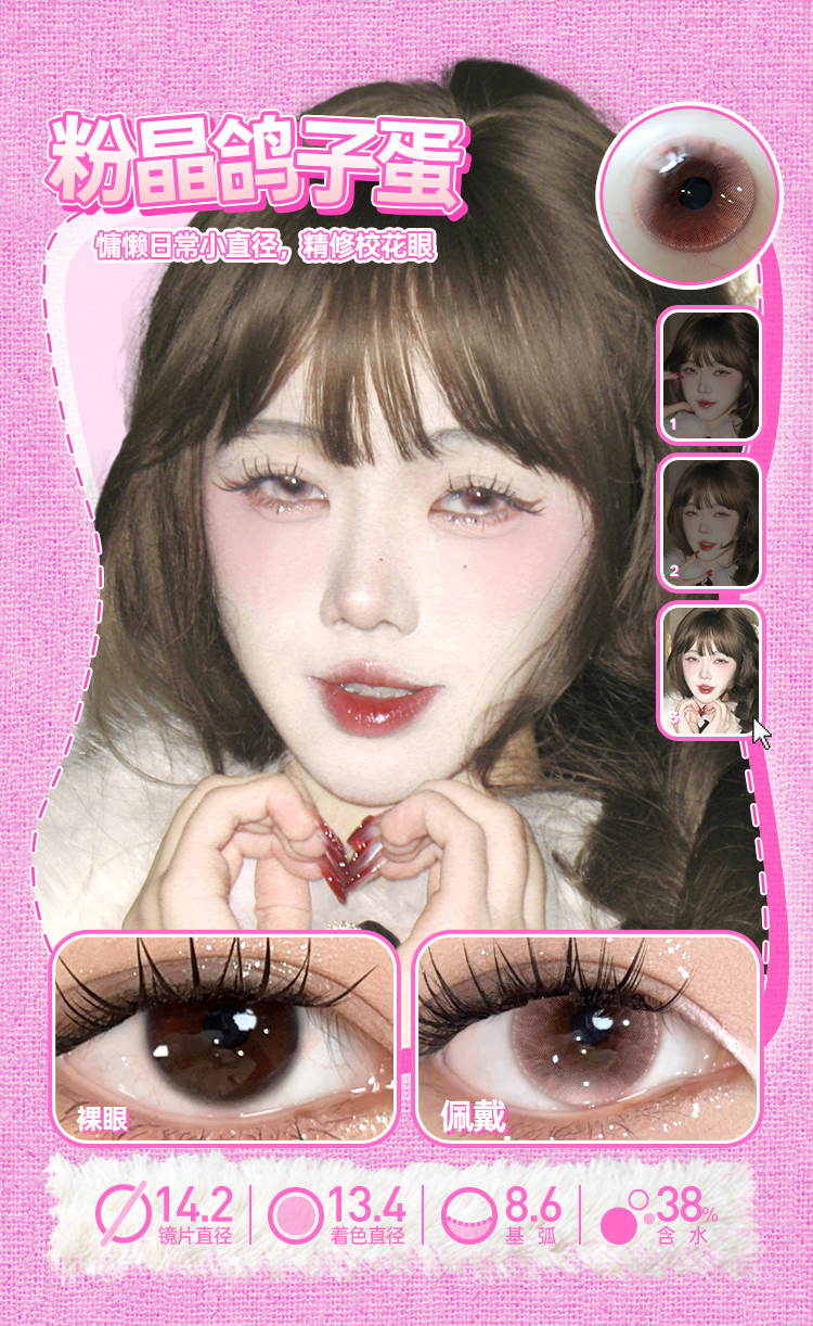 新品【无锁边果冻】方盒系列Obalen欧巴兰清透自然感【粉晶鸽子蛋】14.2中直径半年抛美瞳隐形眼镜2片装
